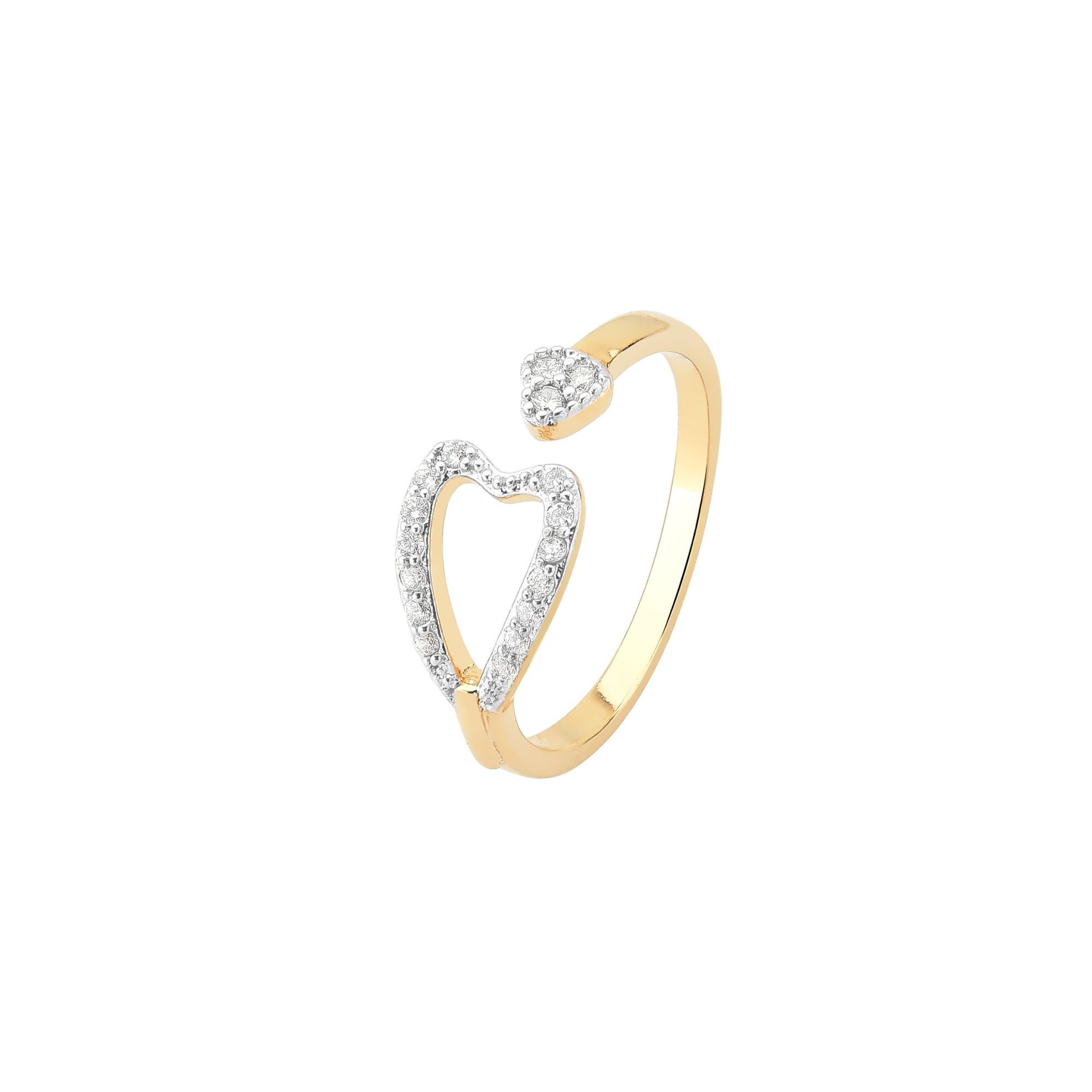 Anel Aberto Coração Vazado e Cravejado