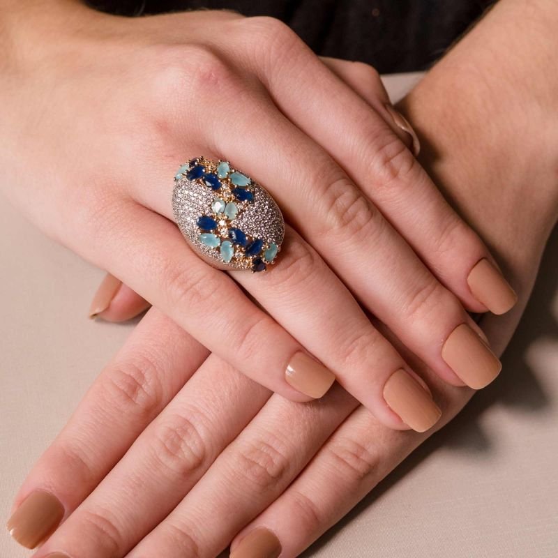 Anel Oval Cravejado Zircônias