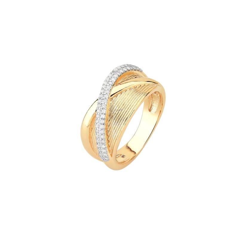 Anel Texturizado Detalhe Liso e Cravejado Fressen Celebrate