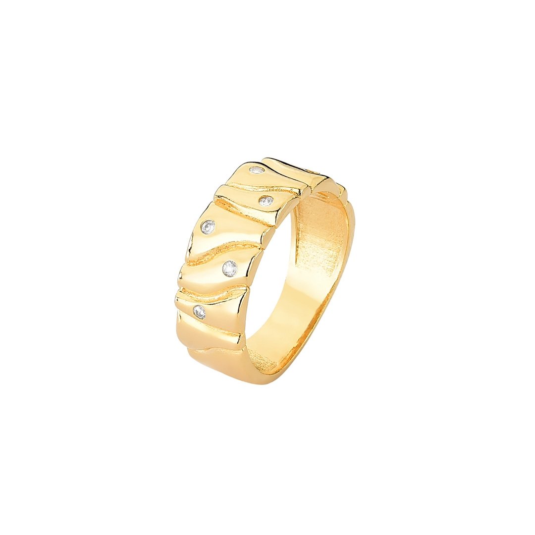 Anel Trabalhado com 6 Zircônias Cravejadas
