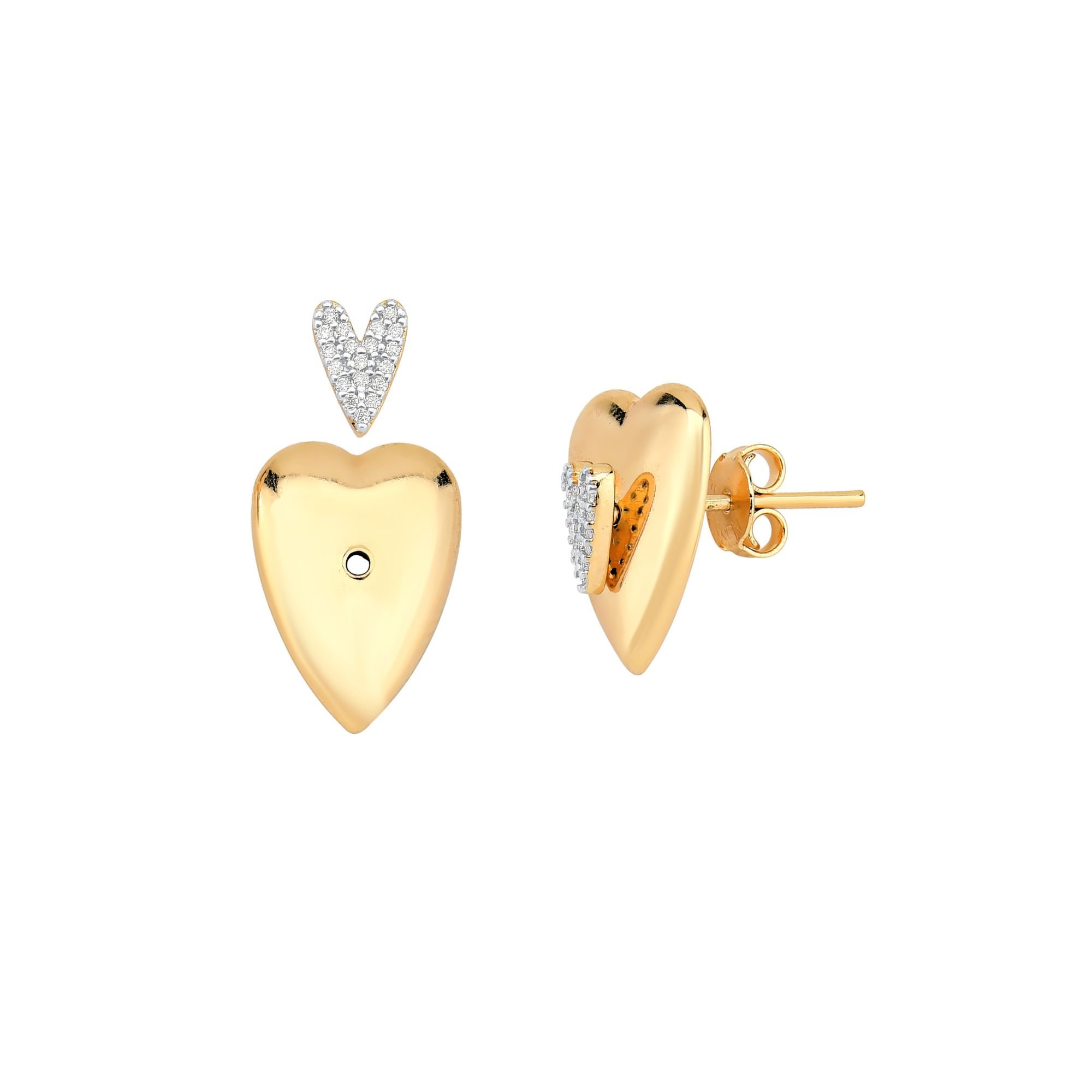 Brinco 2 em 1 Coração Liso e Cravejado