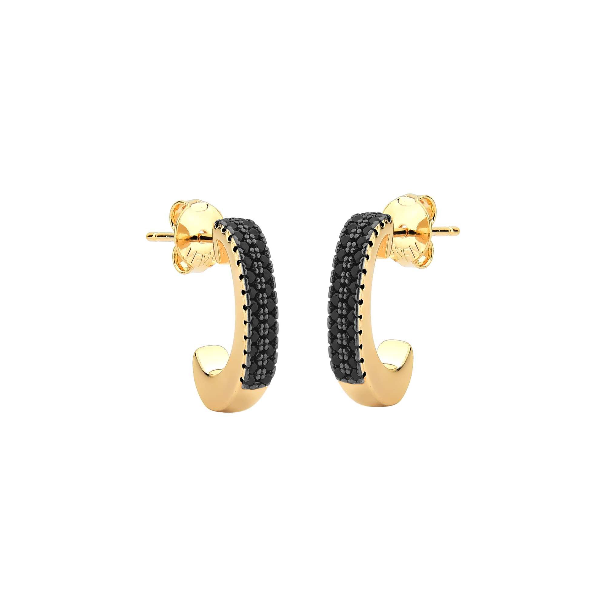O Brinco 2 Fileiras cravejado com Zircônias Negras é a escolha ideal para quem busca sofisticação e elegância. Banhado a Ouro Amarelo 18k, ele combina o brilho das pedras com a modernidade do design, criando um visual marcante.
