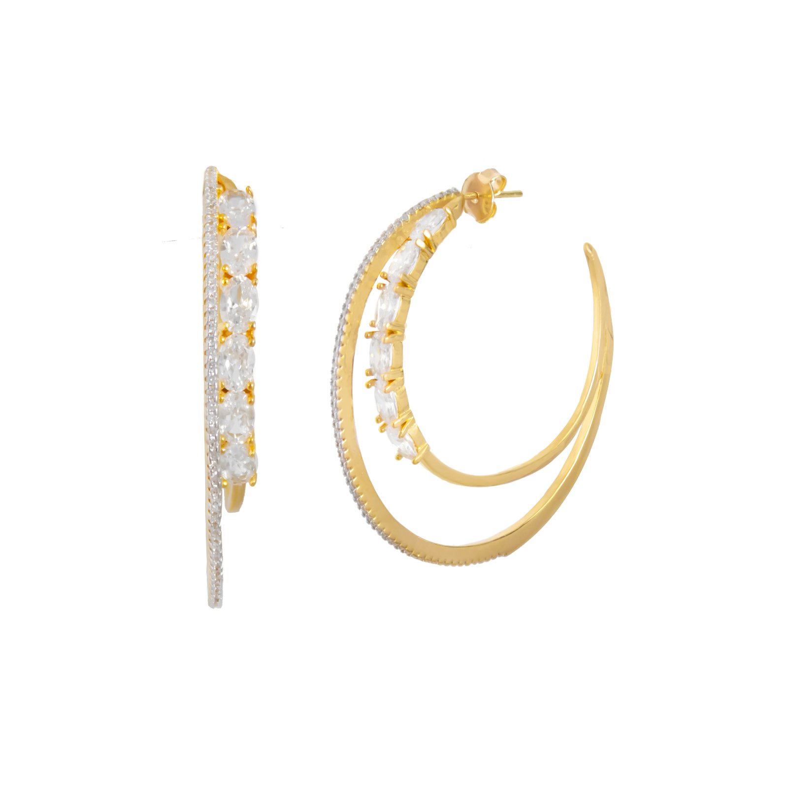 Brinco Argola Dupla Cravejada Zircônia Cristal Banhado a Ouro 18K