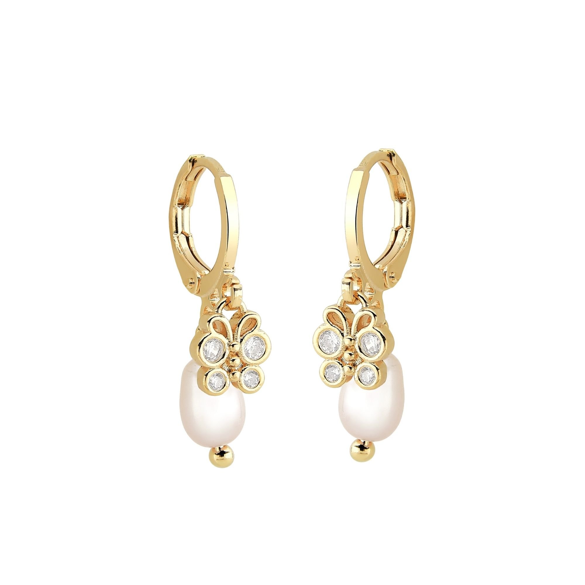 Brinco Argola Pérola Cultivada e Borboleta