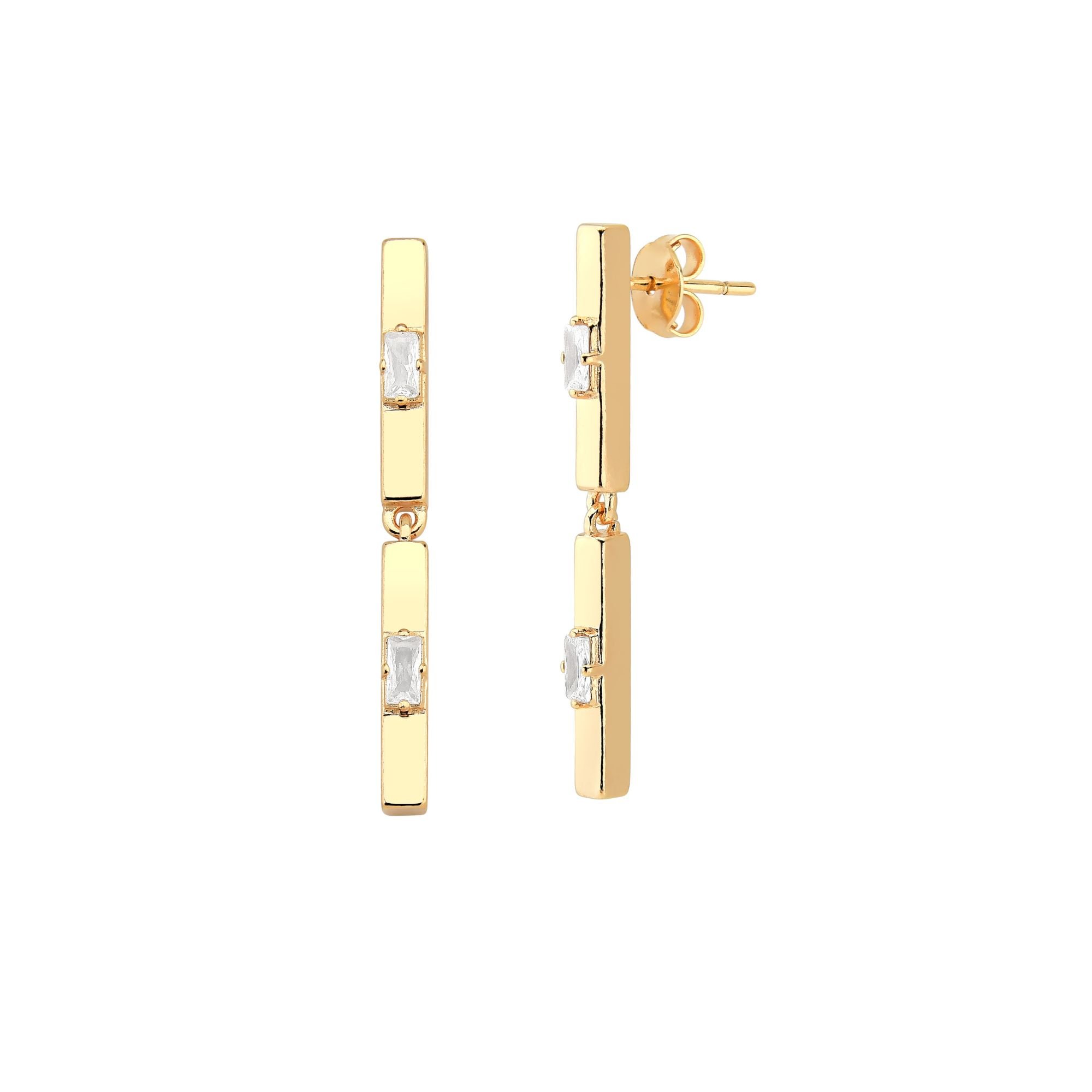 Brinco Barras com Zircônia Baguete