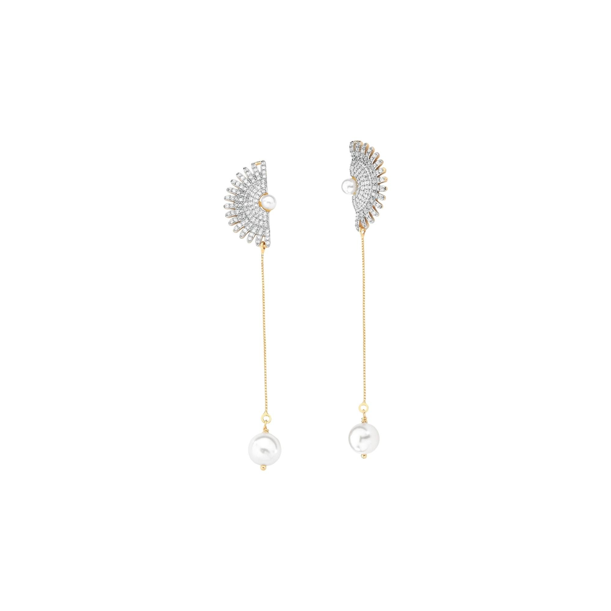 Este brinco elegante apresenta uma base cravejada que realça a beleza de uma pérola shell redonda pendurada por um delicado fio. Banhado a ouro 18K, é perfeito para quem busca um toque de sofisticação e elegância para qualquer ocasião.