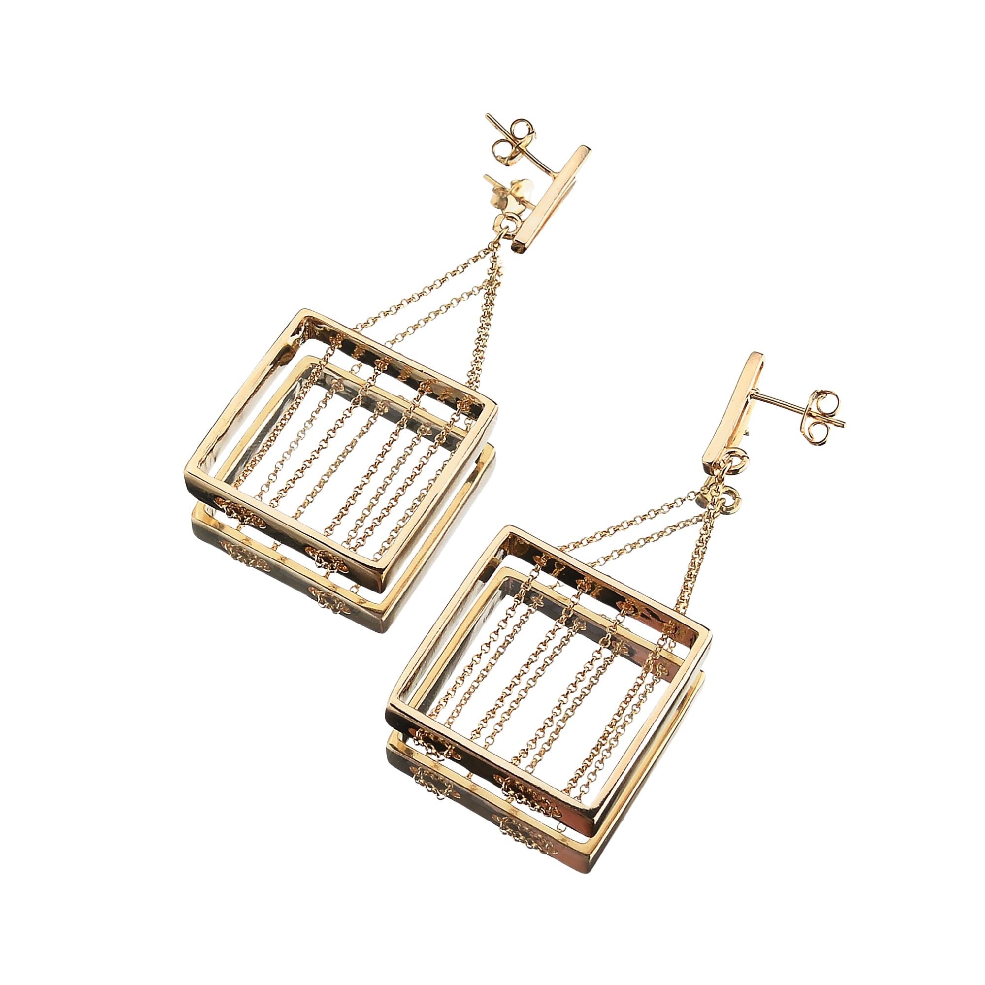 Este brinco comprido apresenta um design moderno com um pingente quadrado, que traz um toque de sofisticação e estilo contemporâneo. O acabamento banhado a ouro 18K confere à peça durabilidade e brilho, tornando-a uma opção elegante para diversas ocasiões.