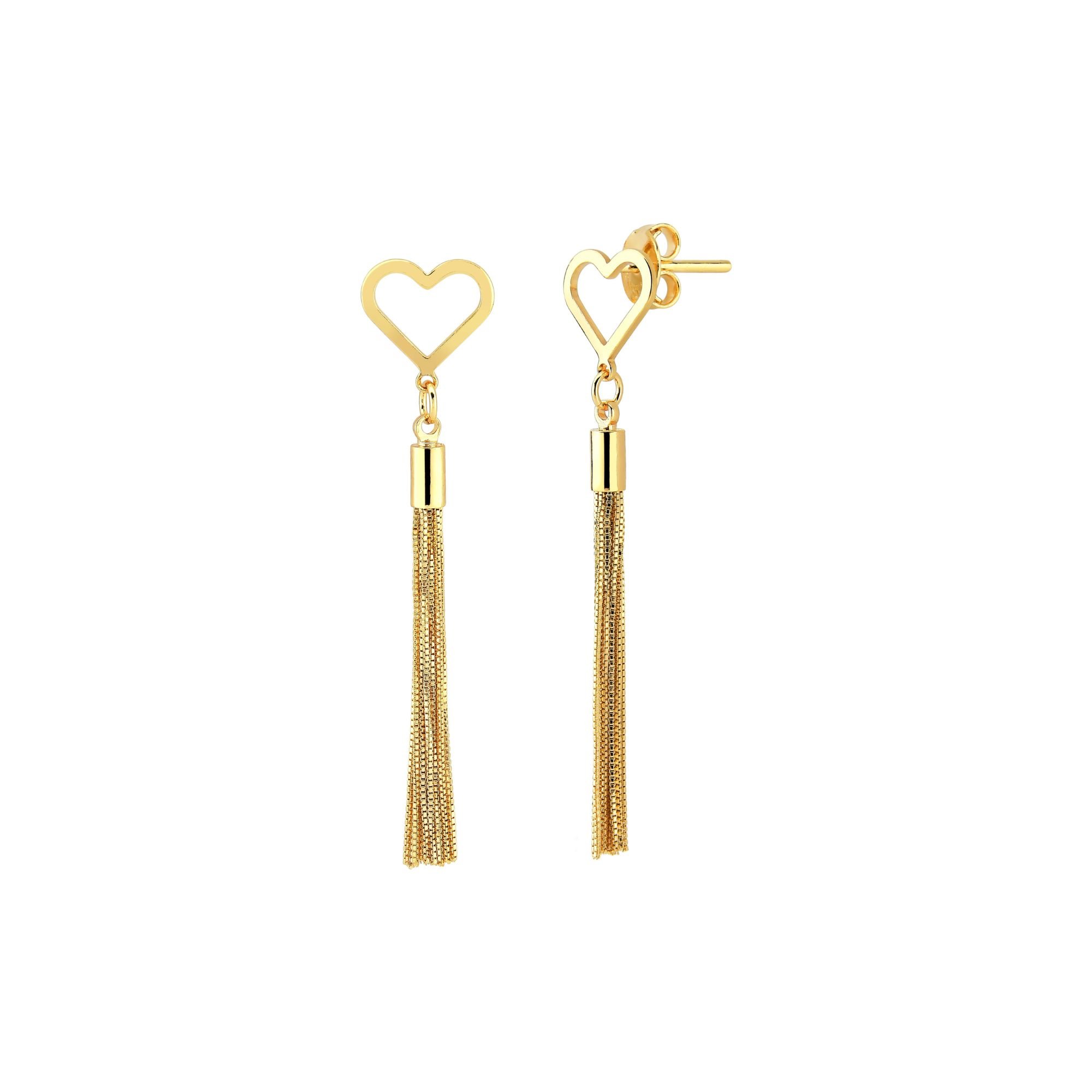 Brinco Comprido Coração Vazado com Fios de Veneziana Essence