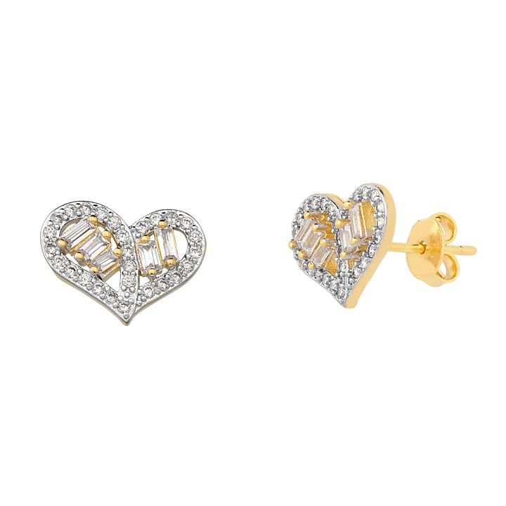 Brinco Coração 10mm Cravejado e Baguete