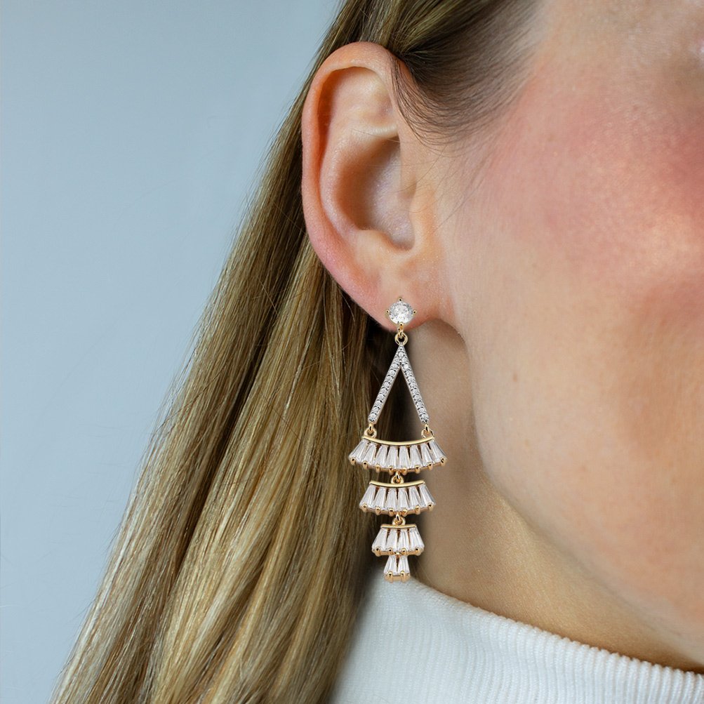 Estes Brincos apresentam um design sofisticado, cravejados com Zircônias Cristais e Zircônias Navete, com aplicação de ródio para um brilho ainda mais intenso. Banhados a Ouro 18K, são ideais para adicionar um toque de elegância ao seu visual, desde os passeios casuais até os eventos mais especiais. Uma peça indispensável para qualquer coleção de joias.