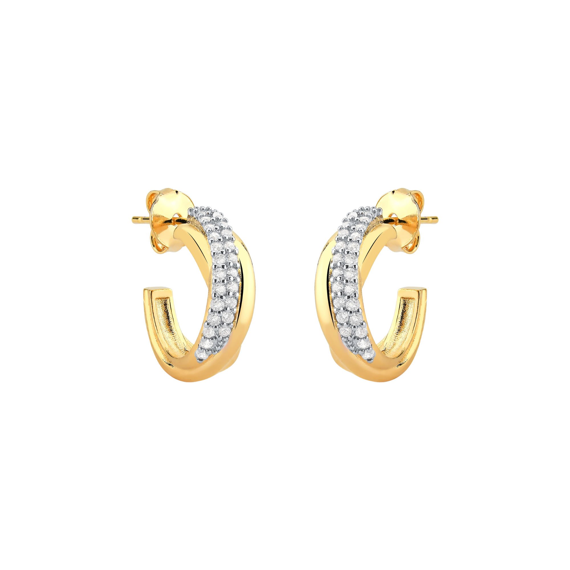 Brinco Day to Night banhado em ouro 18k meia argola lisa e cravejada 16mm: