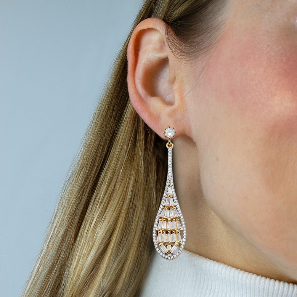 Brinco Gota Cravejado com Zircônia Navete