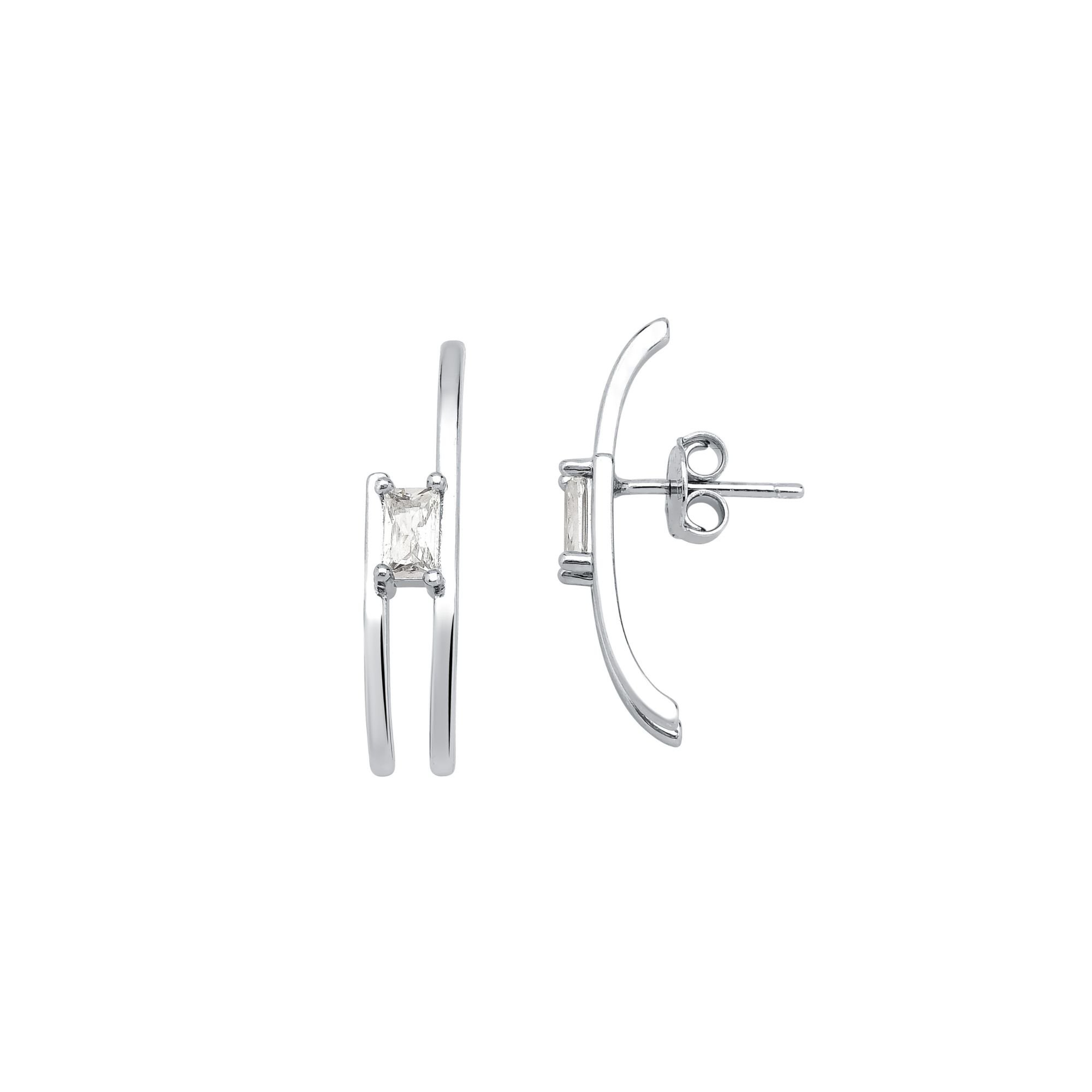 Brinco High Summer Banhado a Ouro Branco 2 Filetes Detalhe Cristal 25mm