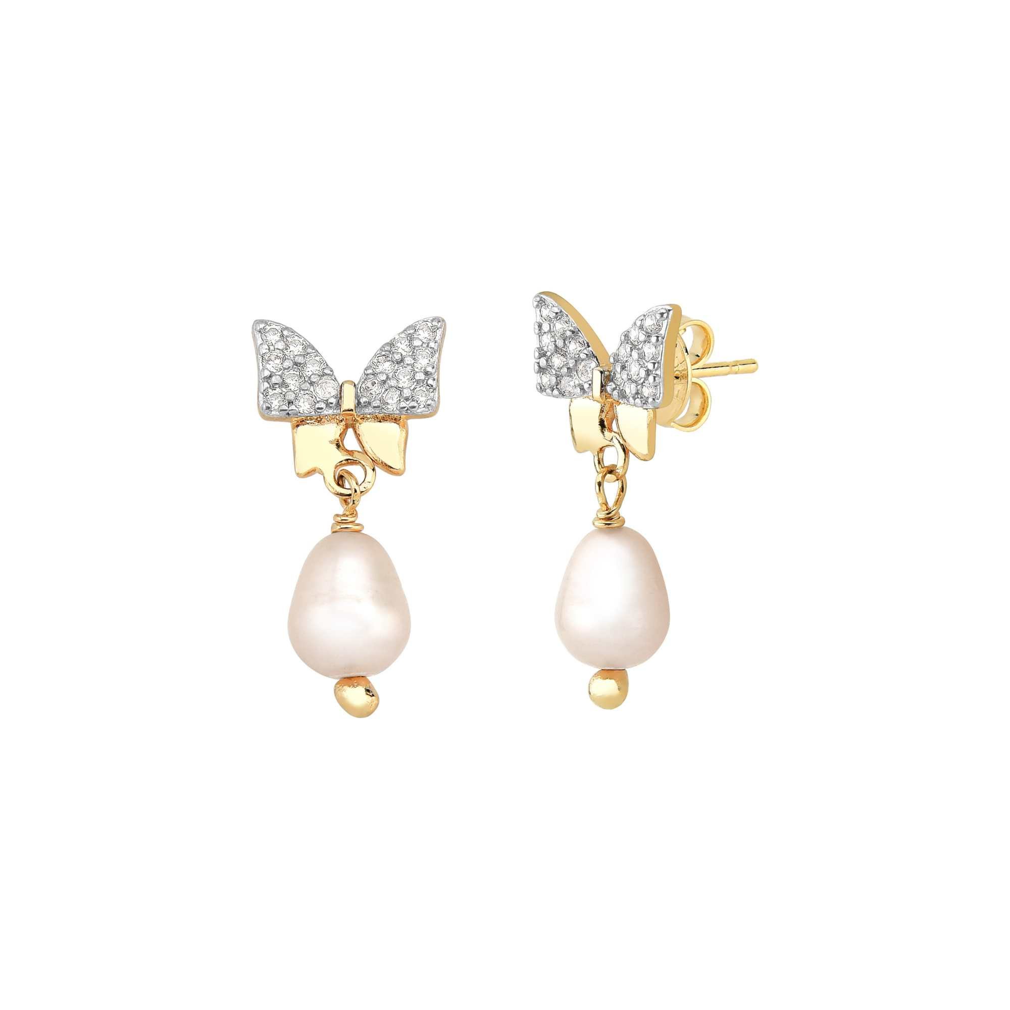 Brinco Laço Cravejado com Pérola Cultivada Fressen Kids Banhado a Ouro 18K