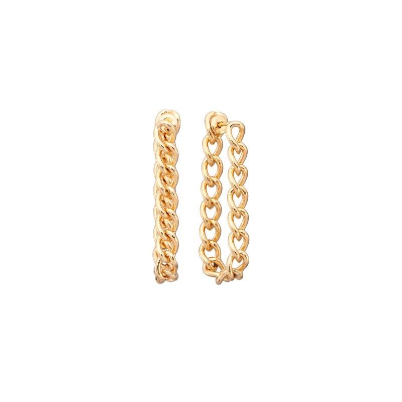 Brinco Liso Oval Corrente Grummê Banhado a Ouro 18K