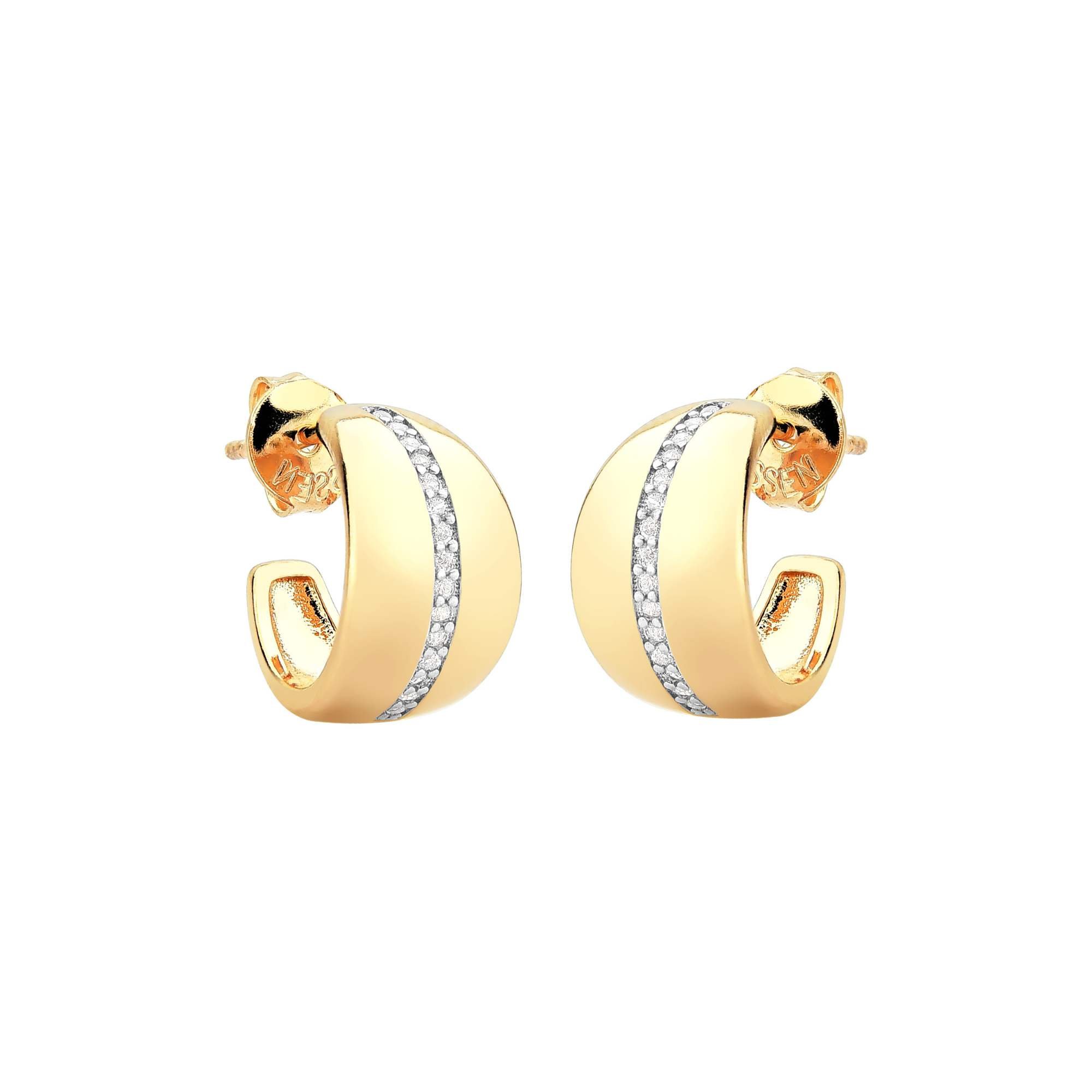 Brinco Meia Argola Lisa e 1 Fileira Cravejada