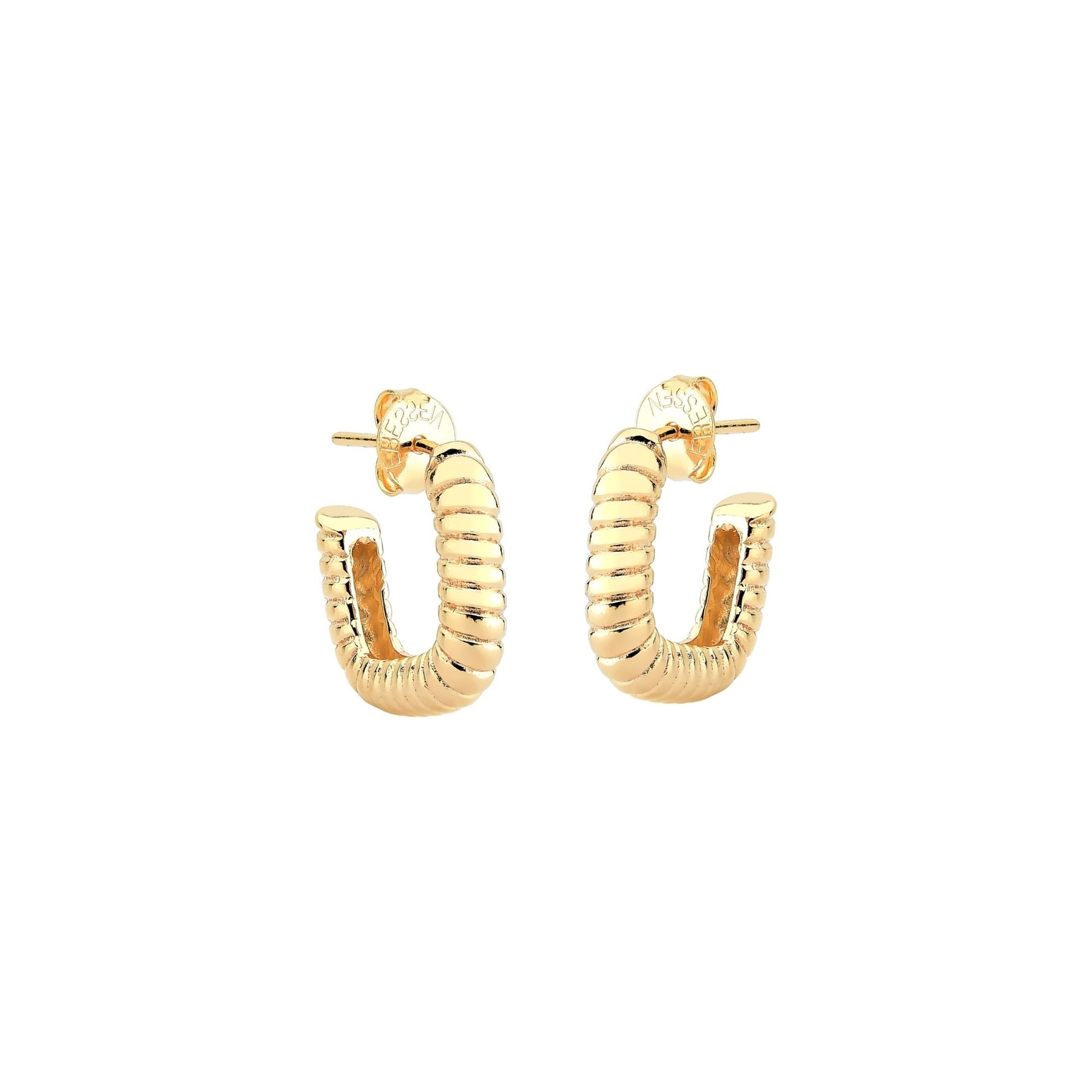 Brinco Meia Argola Quadrada Texturizada