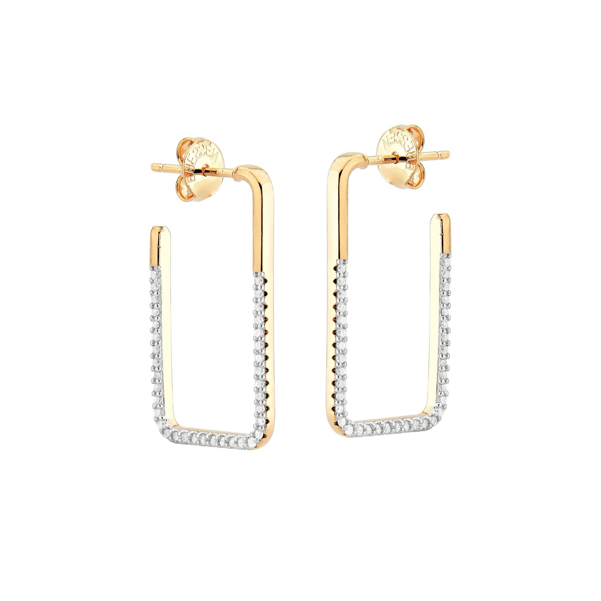Brinco Meia Argola Retangular Lisa e Cravejada