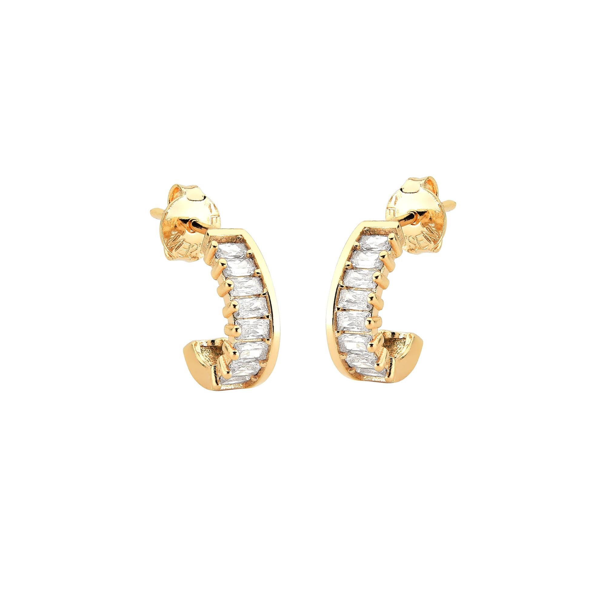 Delicado e marcante, este brinco meia argola traz a elegância das zircônias em lapidação Baguete, que conferem brilho e leveza ao design. Banhado a ouro 18K, é uma joia que une sofisticação e feminilidade, perfeita para compor produções versáteis e atemporais.