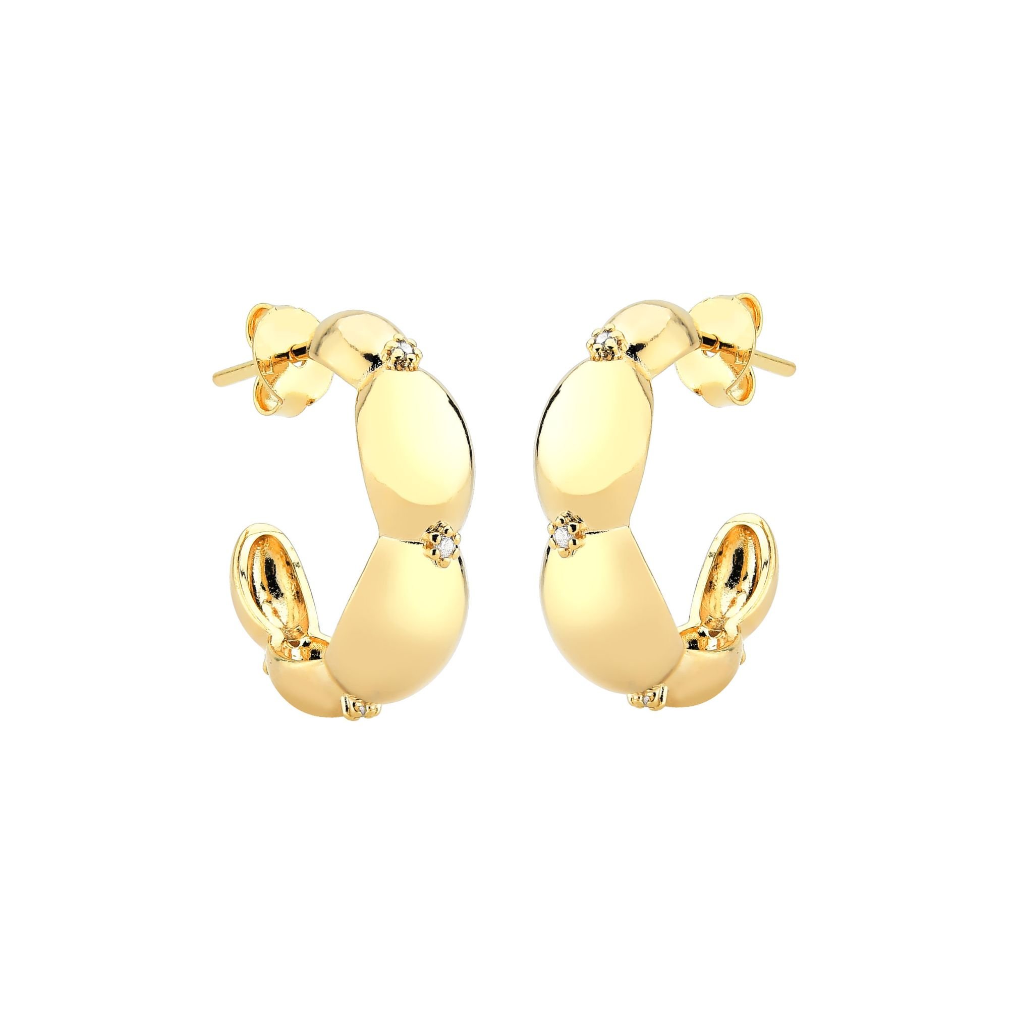 Brinco Mom´s Meia Argola Abaloada com Ponto de Luz