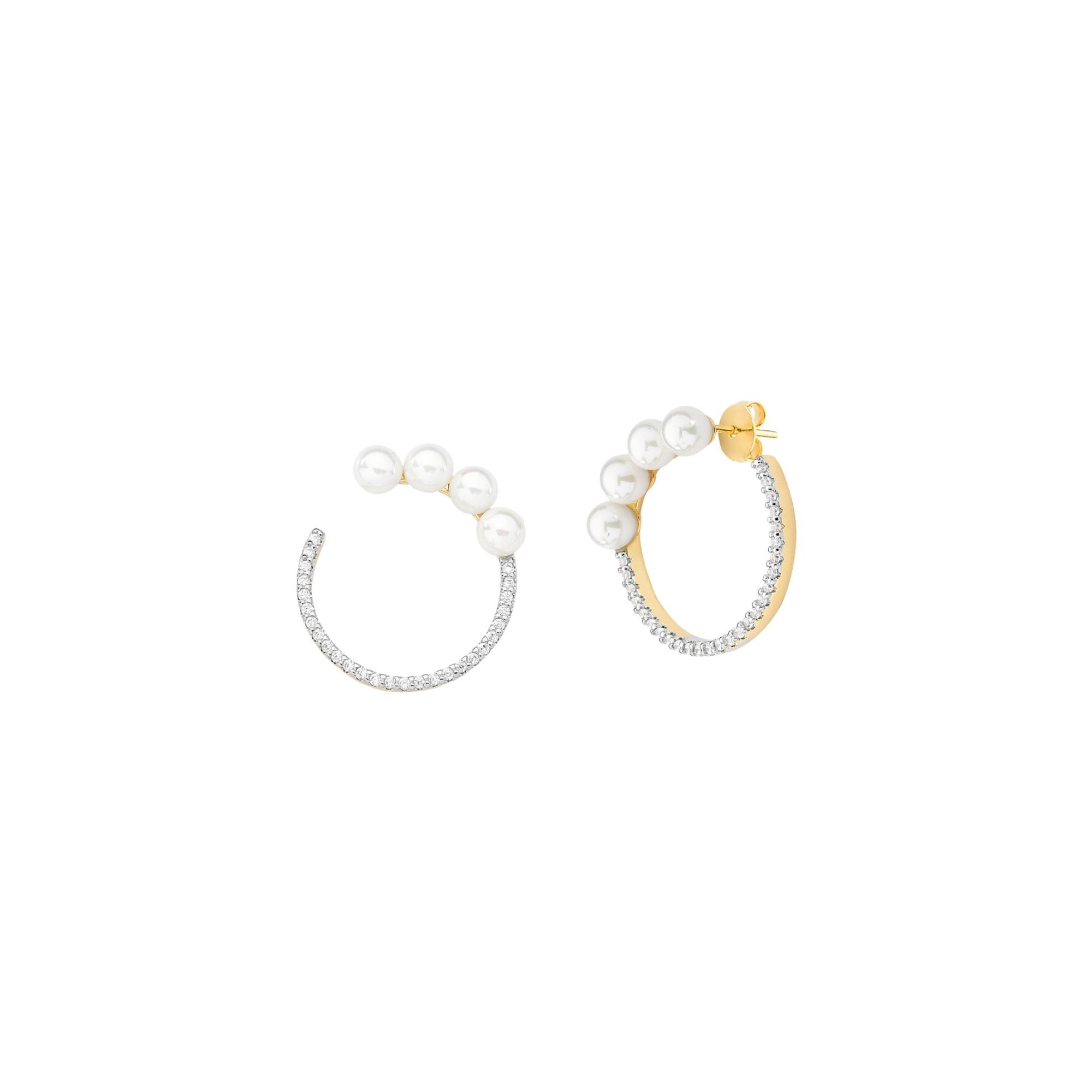 Brinco Mom's Círculo Aberto Cravejado com 4 Pérolas Shell 21mm