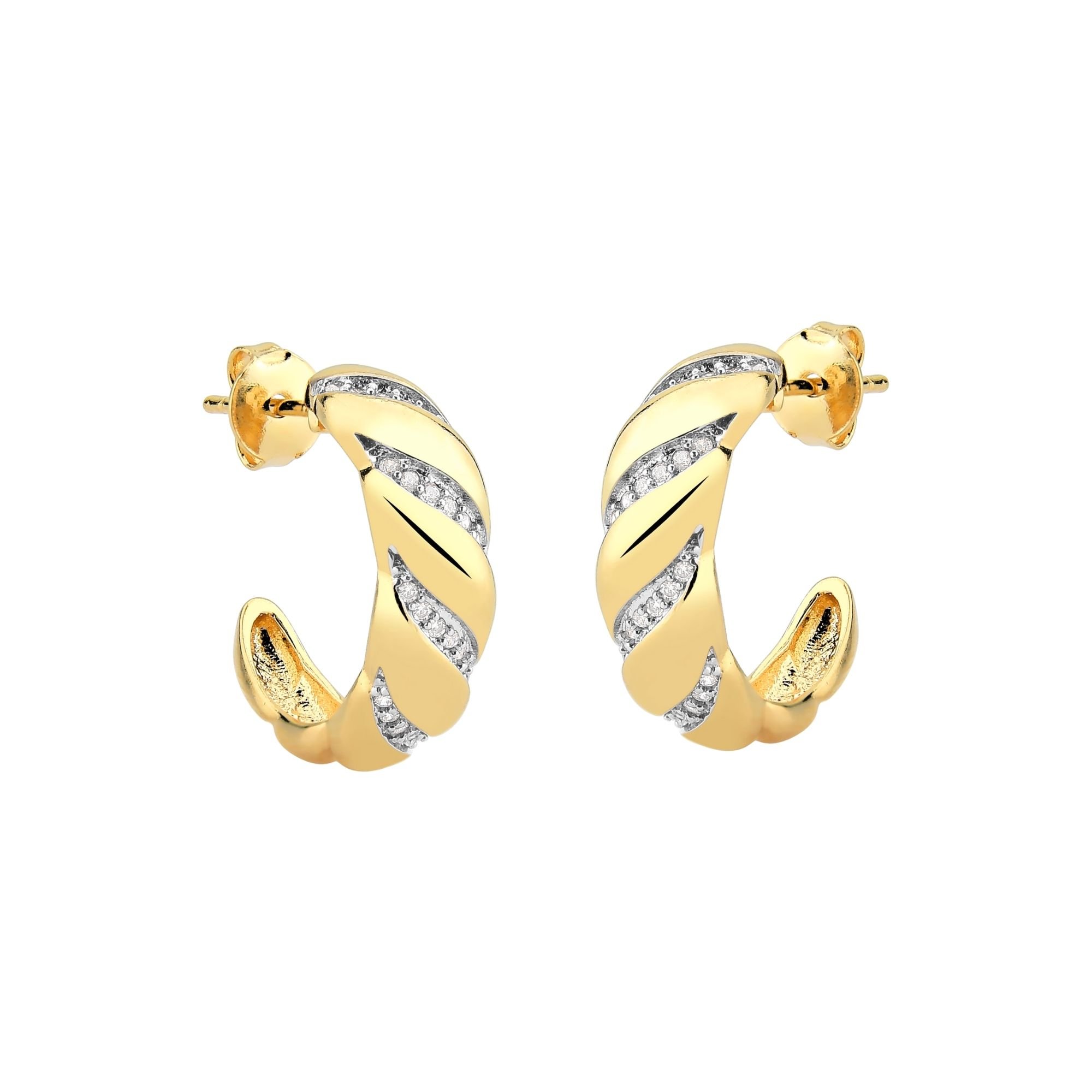 Brinco Mom's Meia Argola Lisa com Linhas Cravejadas