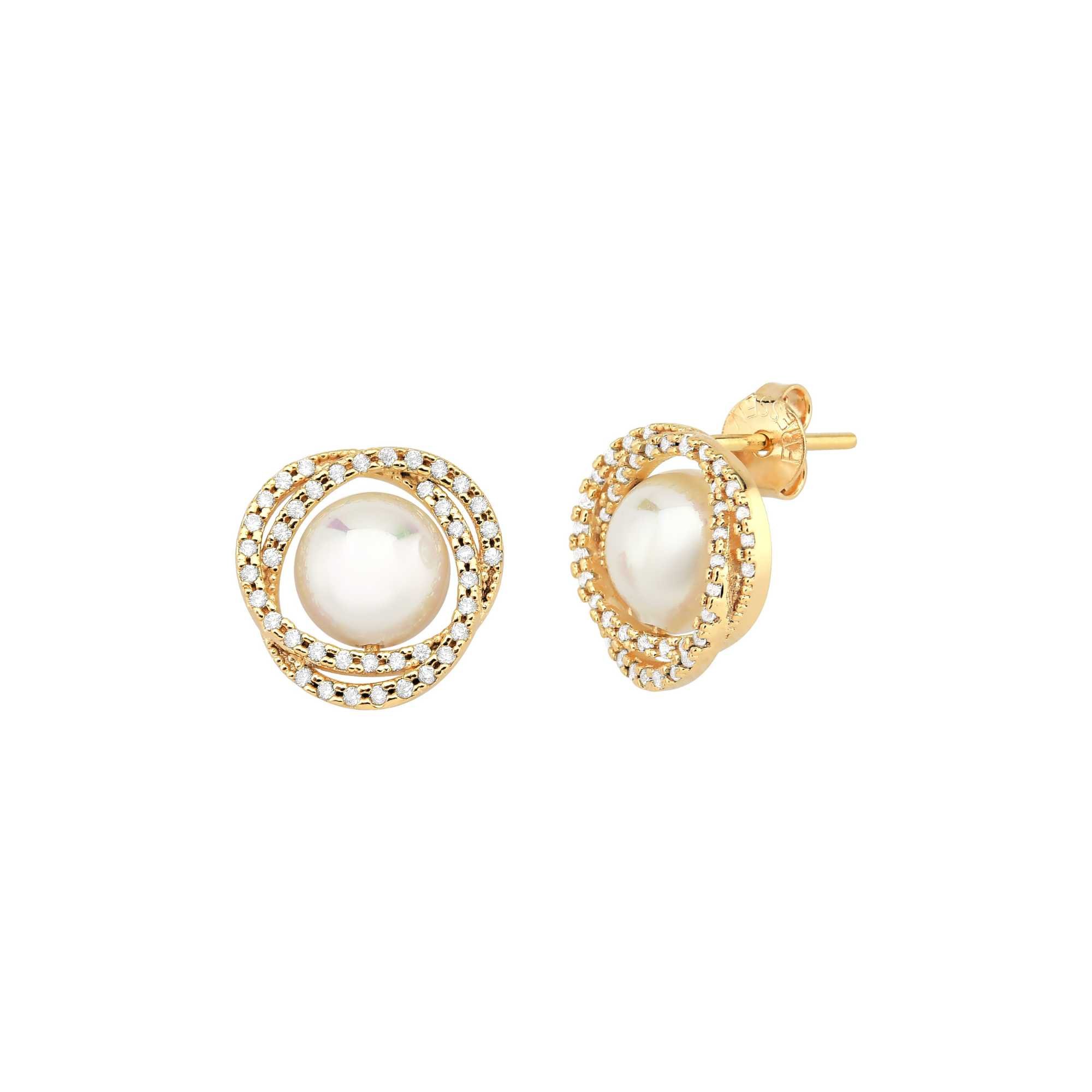 Brinco Pérola Shell Centro Cravejado em Volta Fressen Pérolas