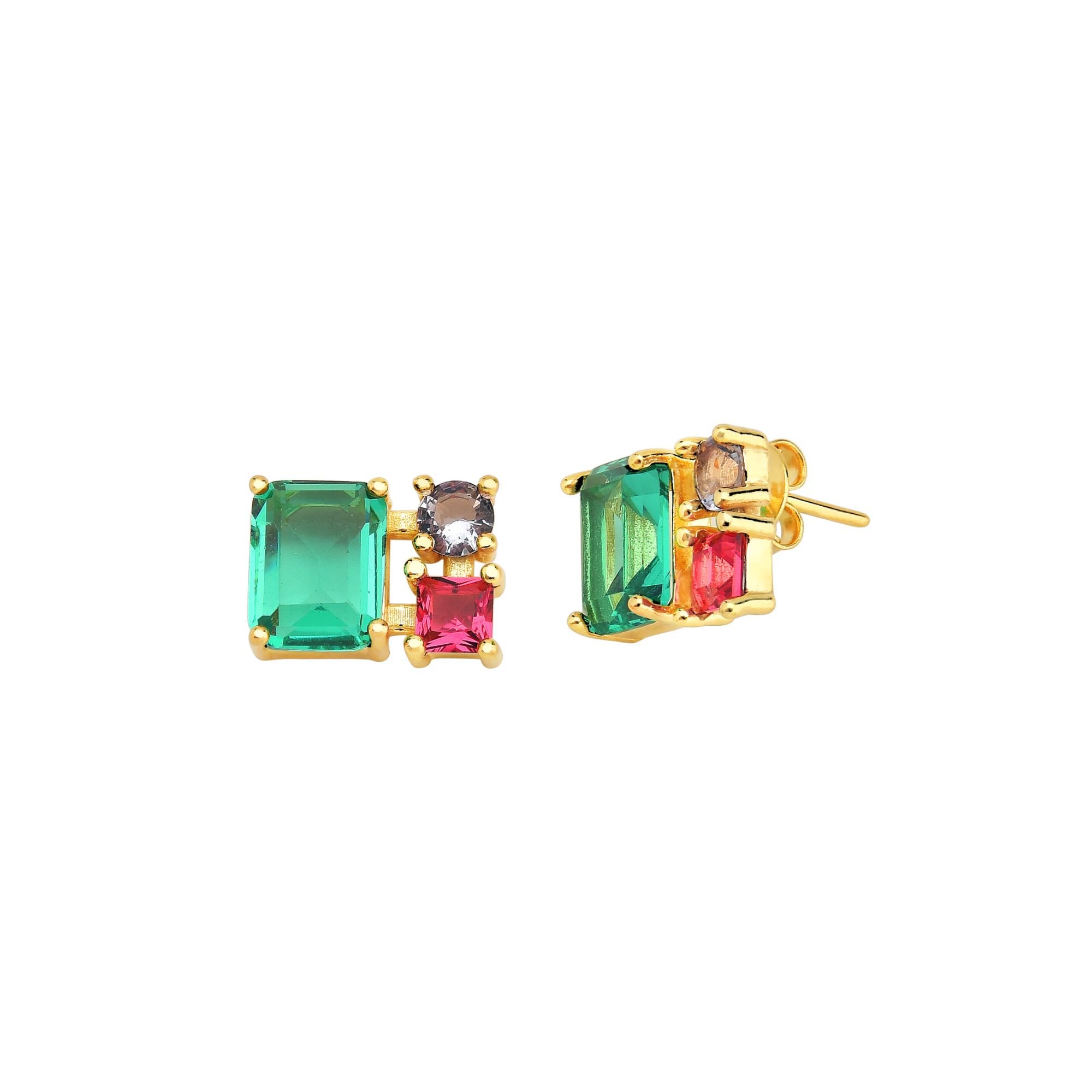 Brinco Quadrado com Zircônias Coloridas 13mm