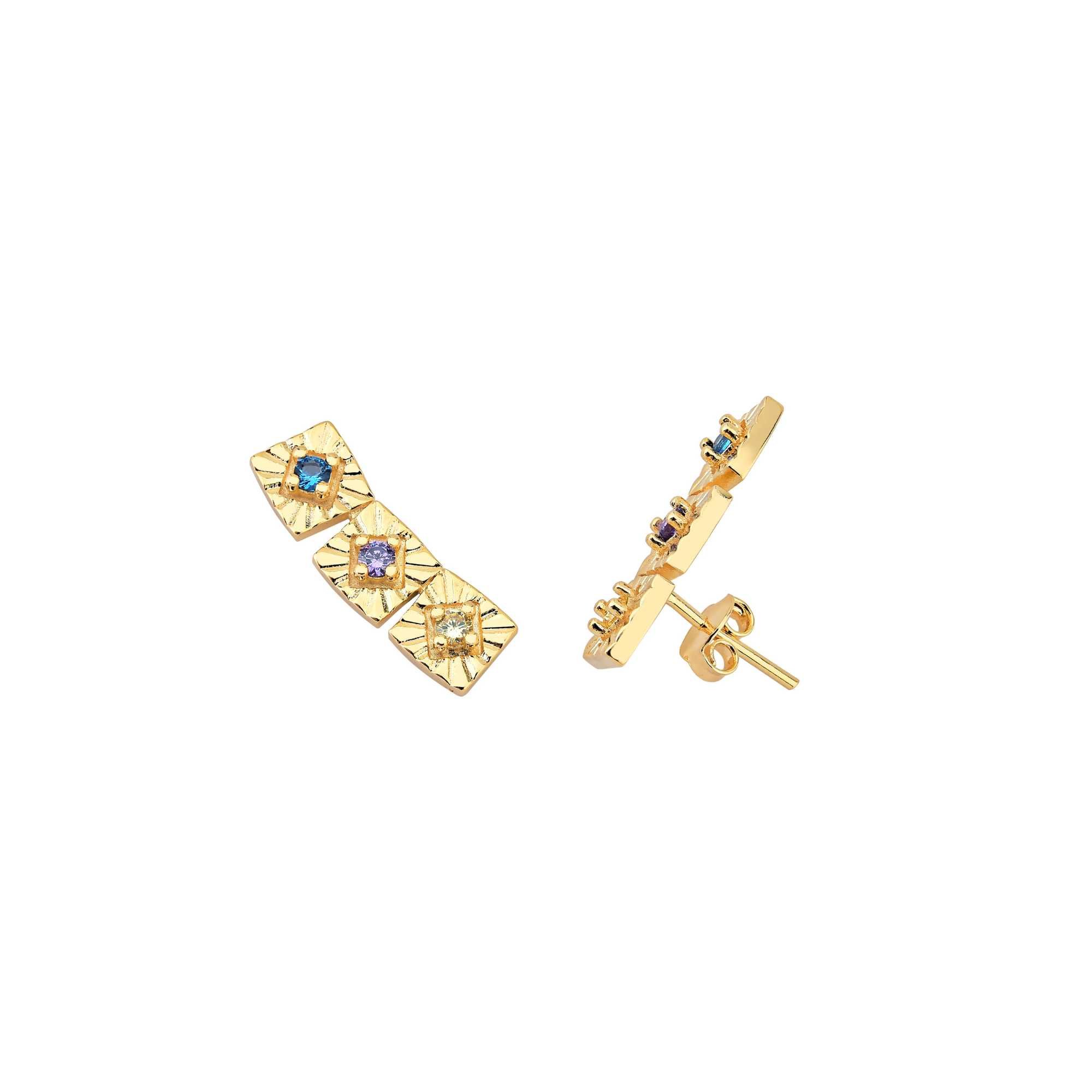 Brinco Trabalhado com 3 Zircônias Coloridas 22mm
