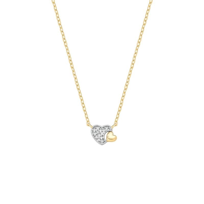 Colar 2 Corações Cravejado e Liso