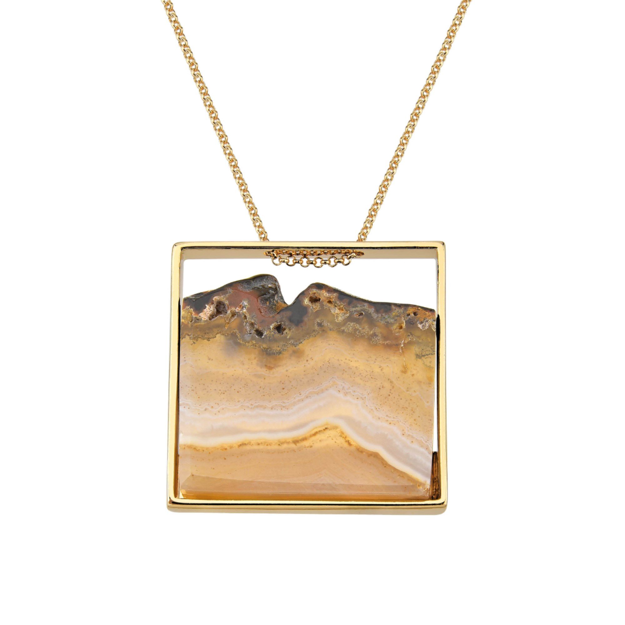 Colar Ágata Quadrado 4x4cm Banhado em Ouro 18K