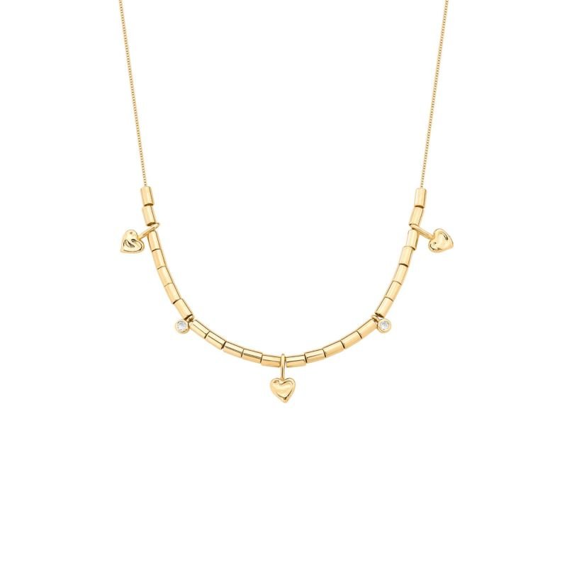 Delicado e sofisticado, o Colar Canutilho com Corações e Ponto de Luz combina a elegância do canutilho com a suavidade dos corações, criando uma composição harmoniosa e feminina. O ponto de luz adiciona brilho sutil, valorizando ainda mais o design com delicadeza.