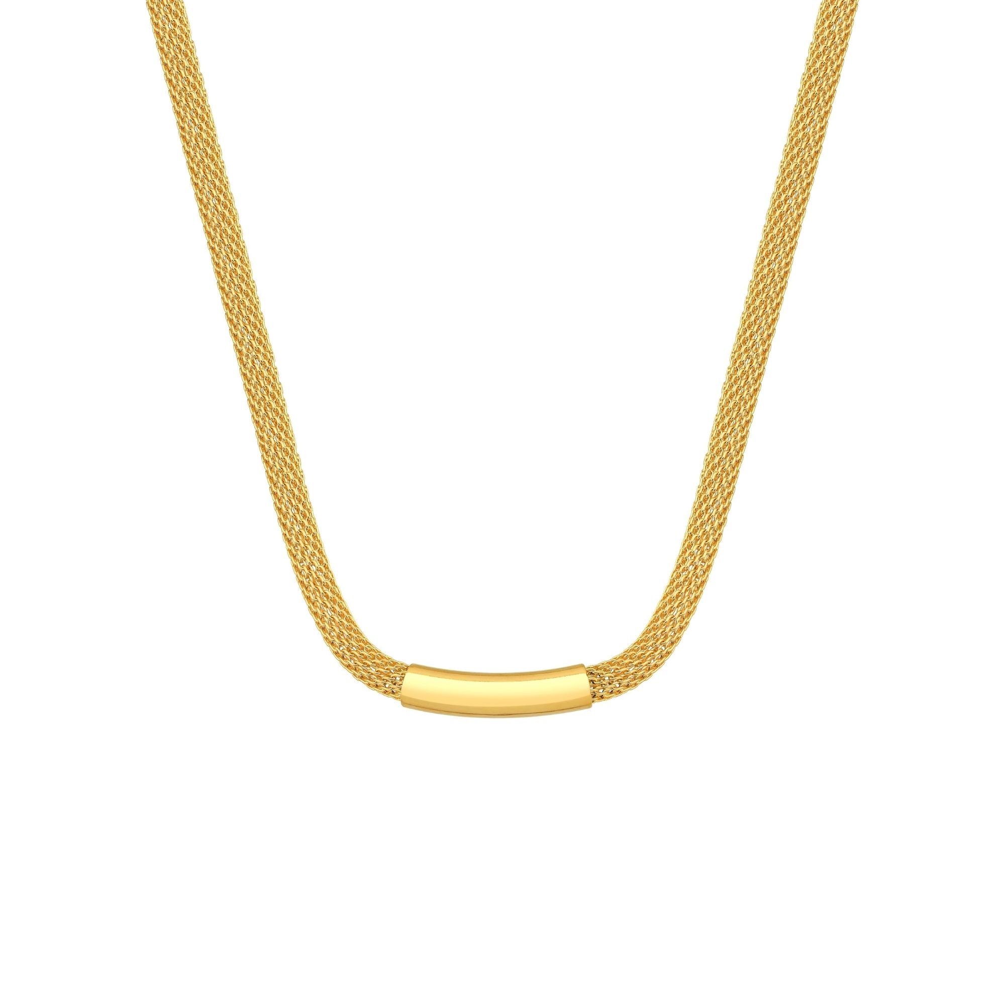 Colar Celebrate Detalhe Tubo Malha Vazada Banhado a Ouro 18K O Colar Celebrate apresenta um design sofisticado e moderno, com um elegante detalhe em Tubo de Malha Vazado. Uma peça versátil e cheia de estilo, perfeita para complementar produções refinadas e elegantes.