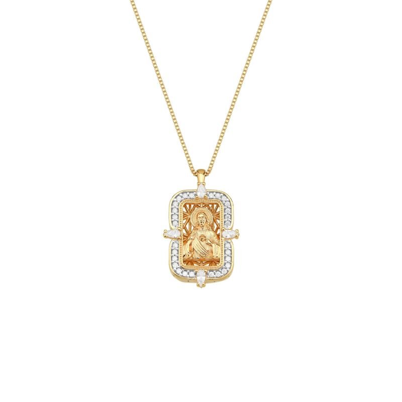 Colar Círculo Medalha Retangular e Jesus Cristo