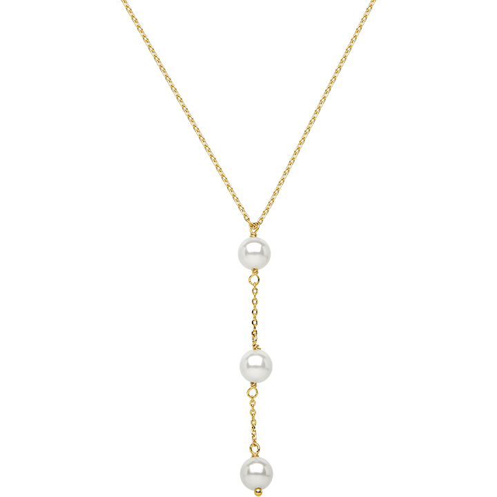 Colar com Pingente Pêndulo de Pérolas Shell 8mm Banhado a Ouro 18K Com um design clássico e atemporal, este colar apresenta um elegante pingente em formato de pêndulo, composto por 3 pérolas shell de 8mm, que oferecem charme e sofisticação ao visual. A corrente Cartier de 40cm com extensor de 5cm complementa o conjunto com delicadeza e versatilidade.