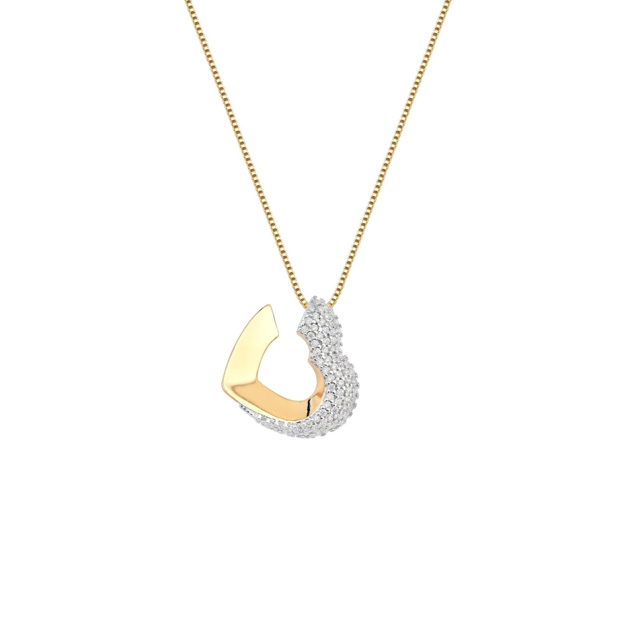 Colar Coração Aberto Liso e Cravejado Fressen Moms Banhado a Ouro 18K Uma joia que traduz o amor incondicional de mãe. Banhado a ouro 18K, o colar com pingente de coração aberto combina o acabamento liso com detalhes cravejados, criando um design sofisticado e cheio de significado. Uma peça delicada que simboliza a abertura do coração materno e a luz que ele irradia.