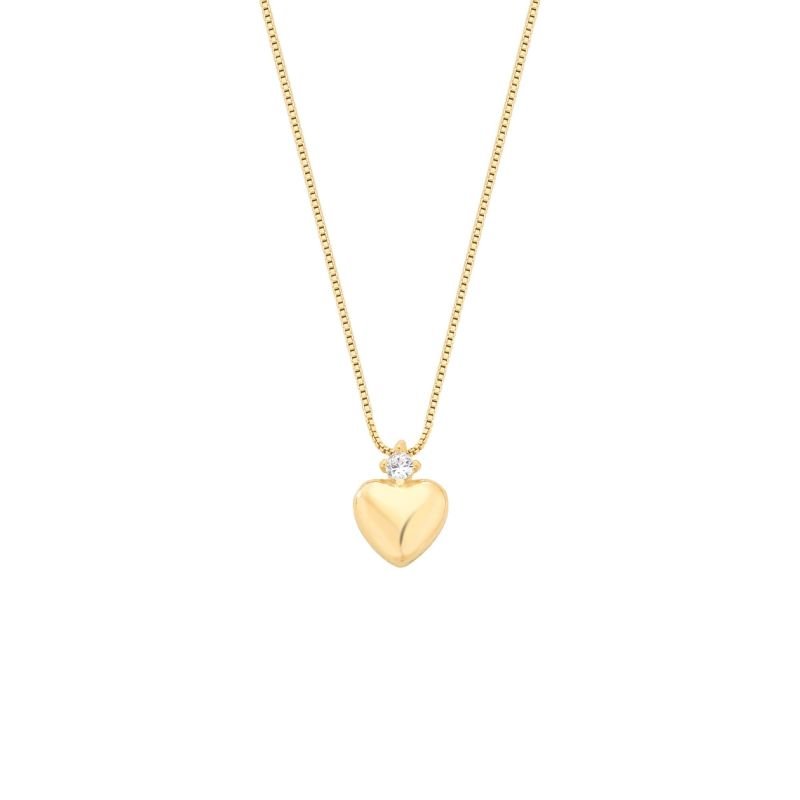Colar Coração Liso Lateral Cravejada e Ponto de Luz