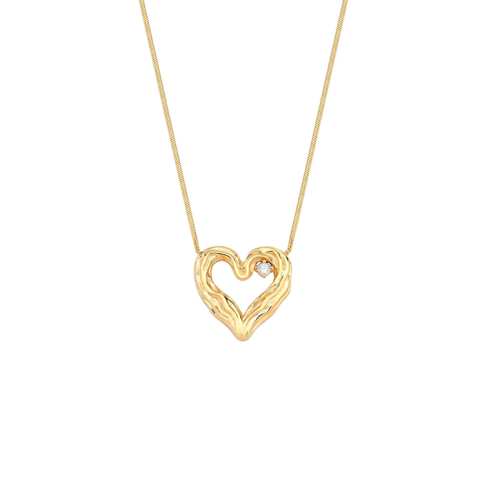 Colar Coração Texturizado Vazado Ponto de Luz Fressen My Heart Banhado a Ouro 18K Este Colar apresenta um Coração texturizado e vazado, delicadamente banhado a Ouro 18K, com um Ponto de Luz que adiciona brilho e sofisticação. Com 45cm de comprimento mais extensor, ele é perfeito para complementar seu visual com elegância e charme em qualquer ocasião.