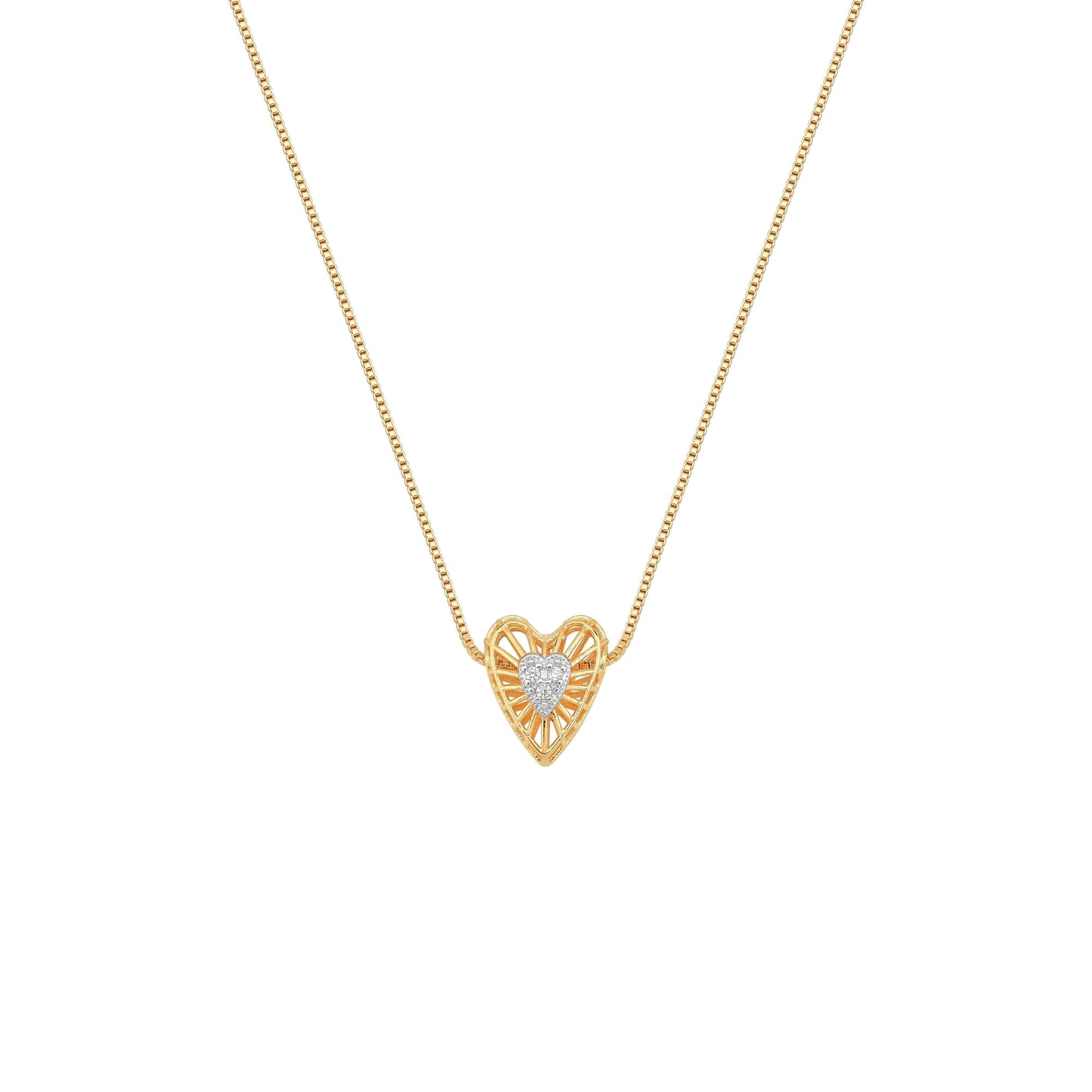 Colar Coração Vazado com Centro Cravejado - Banhado a Ouro 18K Uma joia que traduz amor com brilho e leveza. O Colar Coração Vazado possui um design delicado, com centro cravejado de zircônias que adicionam um toque de sofisticação à peça. O banho em ouro 18K garante acabamento luminoso e durabilidade, tornando-o perfeito para presentear ou usar em momentos especiais.