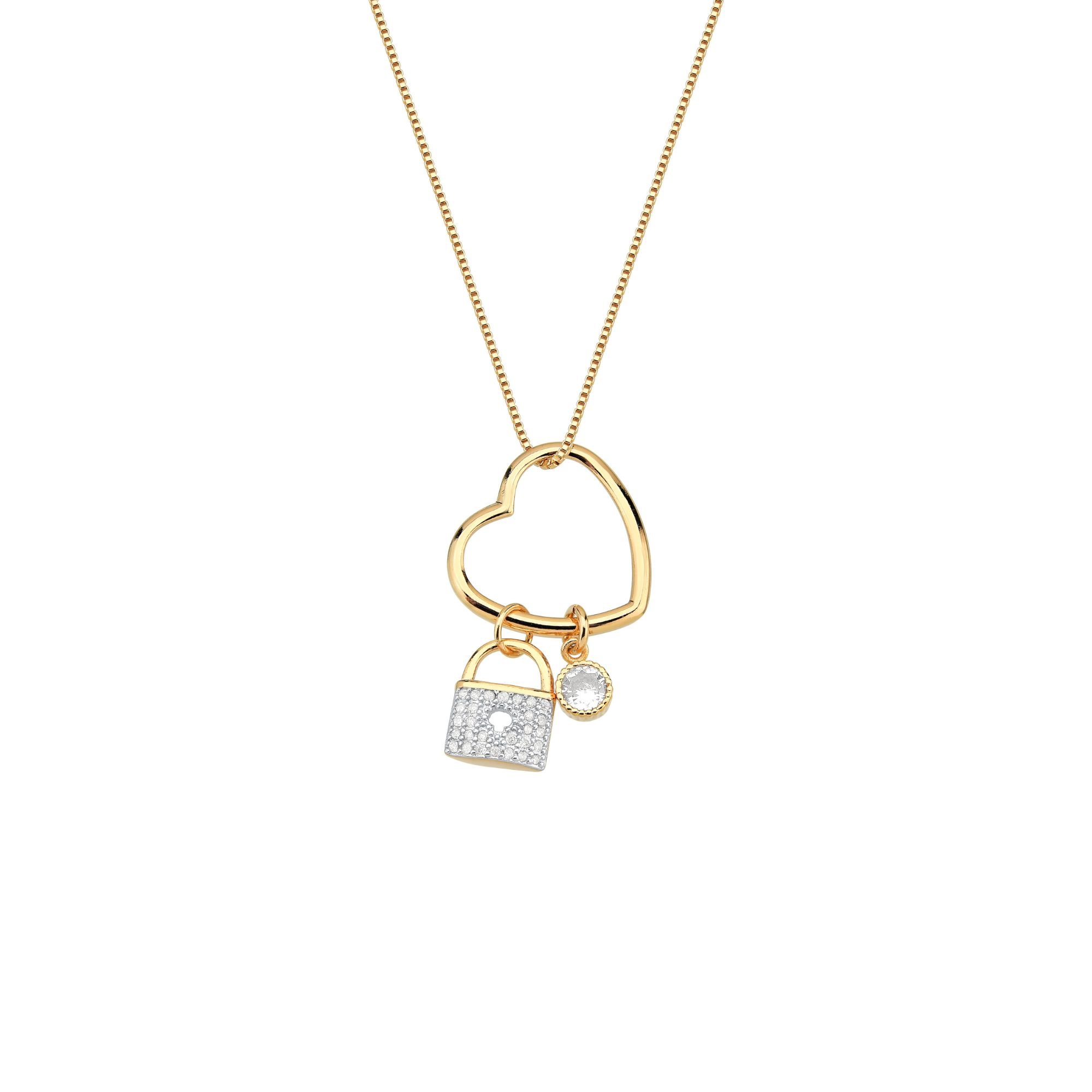 Colar Coração Vazado com Cadeado e Ponto de Luz - Banho de Ouro 18K Um símbolo de amor e mistério em forma de joia. Este colar traz um delicado coração vazado acompanhado de um mini cadeado e um ponto de luz, criando uma composição cheia de significado e charme. O banho de ouro 18K garante brilho e sofisticação, tornando a peça perfeita para presentear ou expressar sentimentos com estilo.