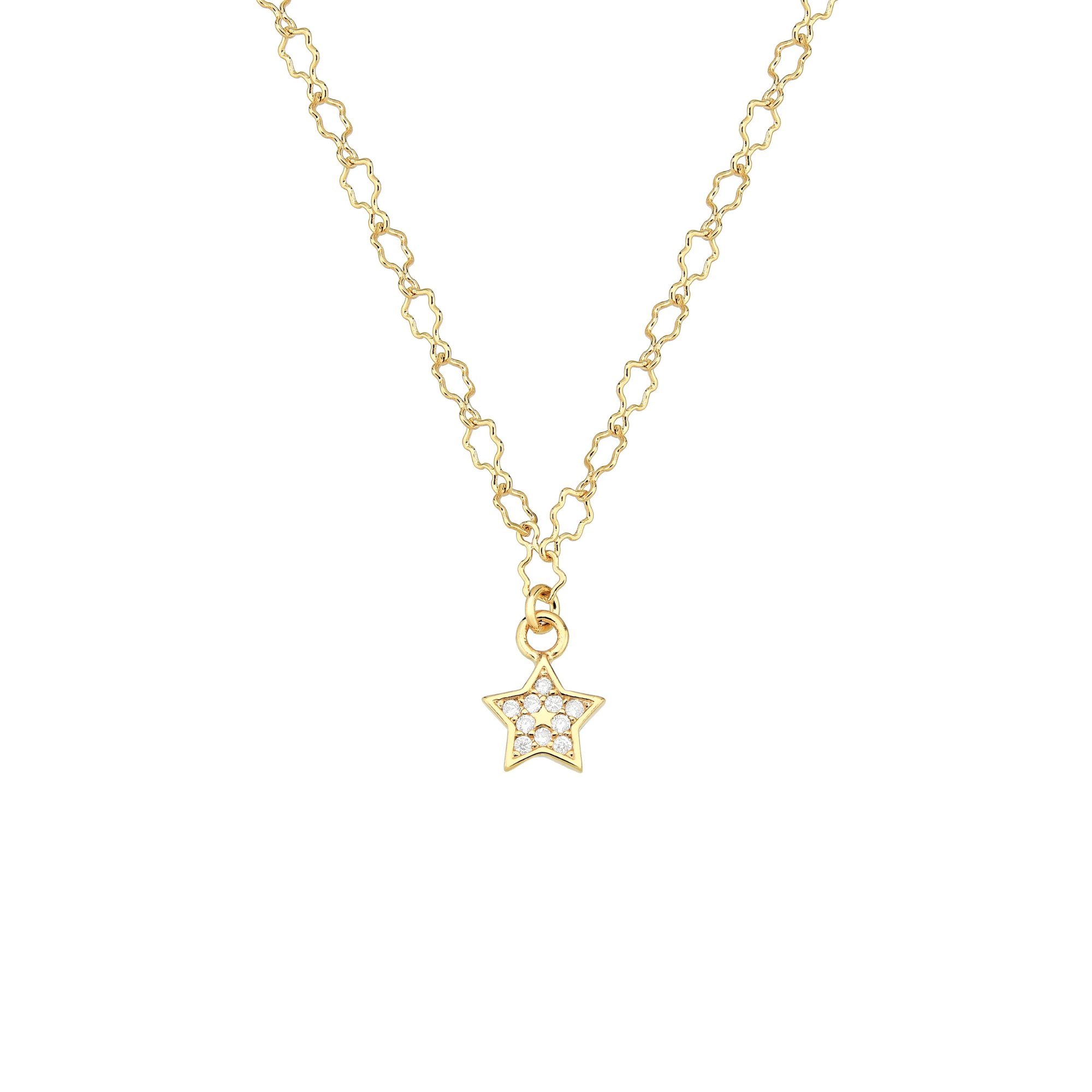 Colar Estrela Cravejada Fressen Kids Banhado a Ouro 18K Este delicado colar infantil com corrente Veneziana e pingente de estrela cravejada em Zircônias traz um toque de brilho encantador. Banhado a Ouro 18K, ele combina a sofisticação do acabamento polido com a proteção antialérgica, sendo ideal para complementar o visual das crianças com muito estilo.