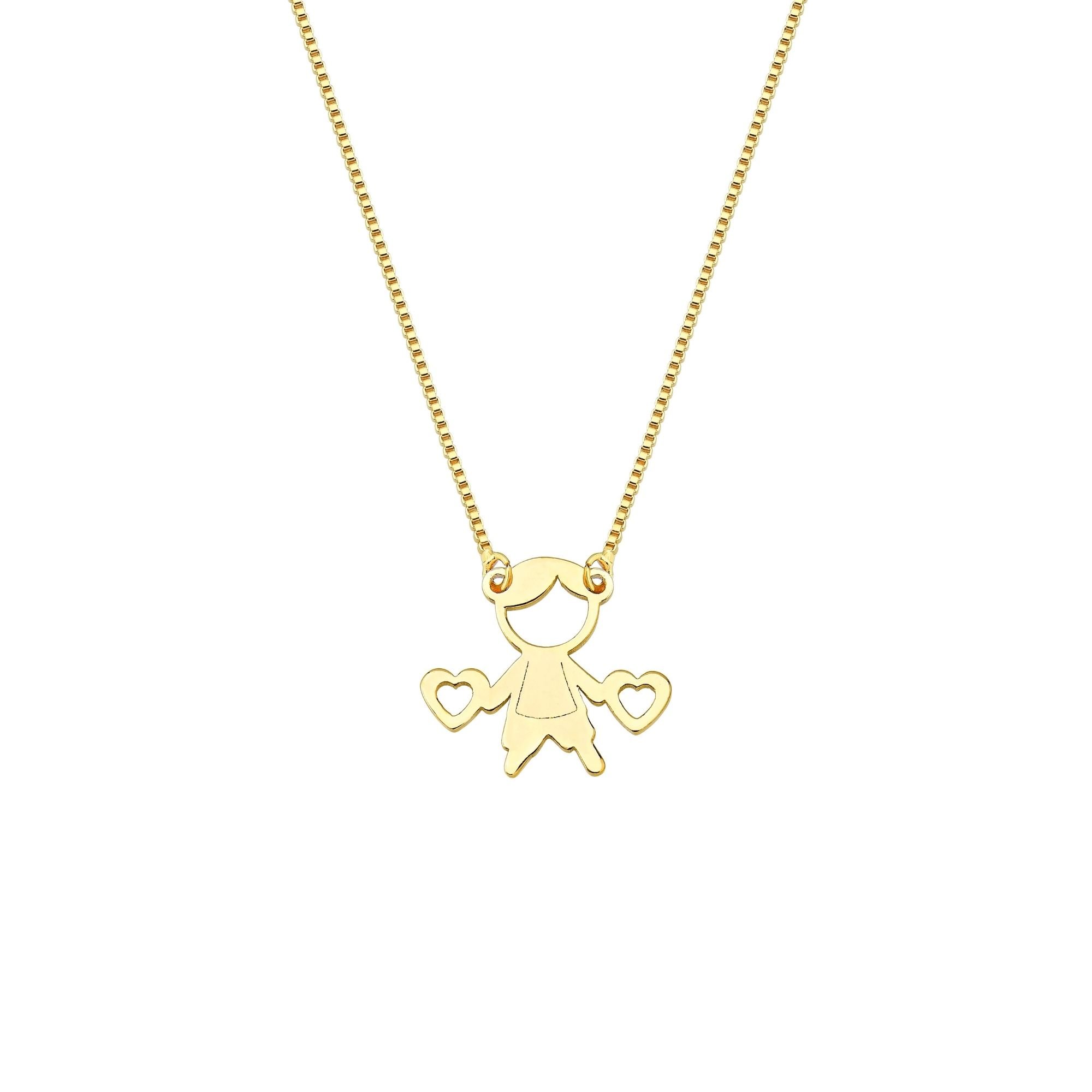 Colar Filho ou Filha com Corações Mom's Banhado a Ouro 18K O Colar Filho ou Filha com Corações da Coleção Fressen Mom's é a joia perfeita para expressar o amor incondicional entre mãe e filho. Com um delicado pingente de menino ou menina rodeado por corações, esse colar é banhado a ouro 18K, proporcionando brilho e sofisticação.