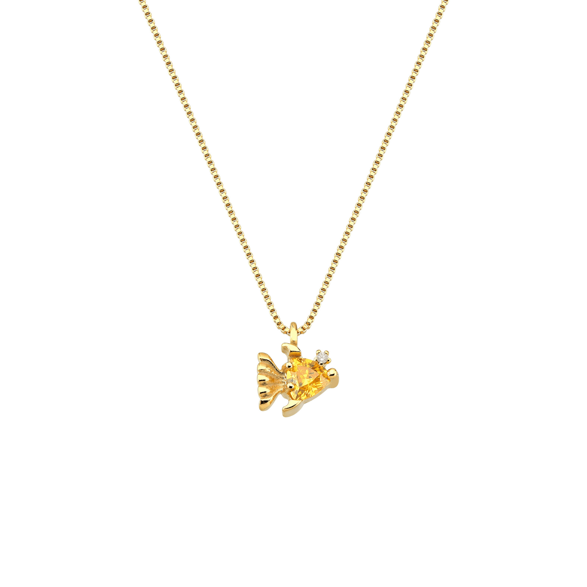 Colar Infantil Pingente Peixe Banhado a Ouro 18K Delicado e cheio de simbolismo, este colar infantil apresenta um lindo pingente de peixe, perfeito para os pequenos que amam o mar e a natureza. Seu design encantador, banhado a Ouro 18K, traz brilho e sofisticação para qualquer ocasião.