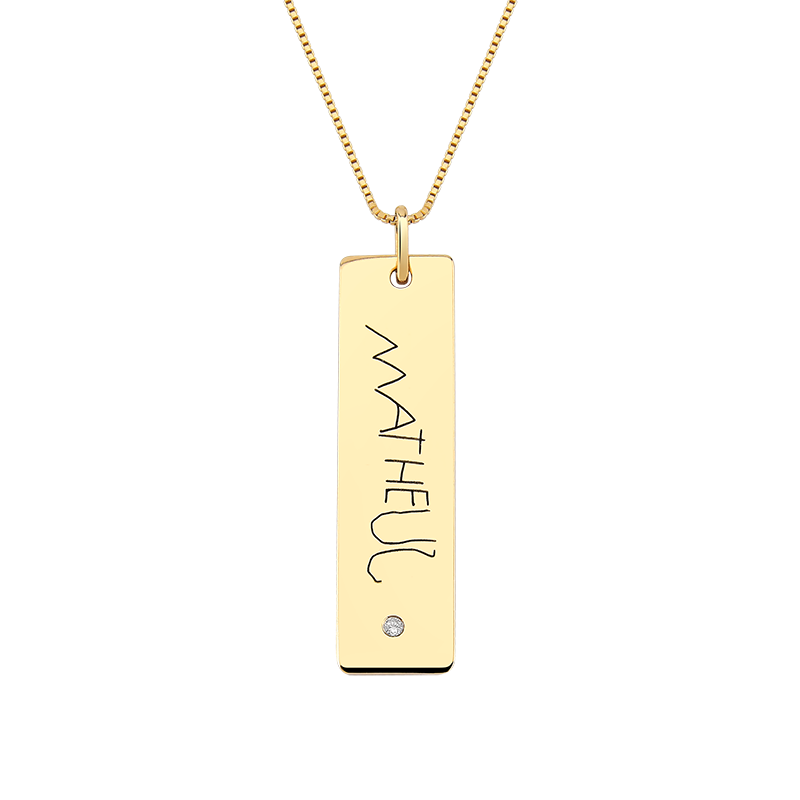 Colar My Collection Personalizável Banhado em Ouro 18K com Ponto de Zircônia Eternize momentos únicos com o Colar My Collection, uma joia exclusiva e cheia de significado. Personalize o pingente com a caligrafia inicial dos seus filhos ou de alguém especial. Com corrente veneziana estilo gravata, banhado a Ouro 18K e detalhe em Zircônia Cristal, este colar é a combinação perfeita de estilo e emoção. Como Funciona a Personalização? Após o pedido, entraremos em contato pelo número cadastrado. Envie uma foto da caligrafia em folha branca lisa, escrita com caneta preta ou azul. Personalizamos sua peça com todo cuidado e carinho. OBS: Peças do My Collection não tem troca ou devolução