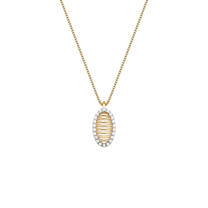Colar Oval Linhas e Volta Cravejada Fressen Celebrate Banhado a Ouro 18K