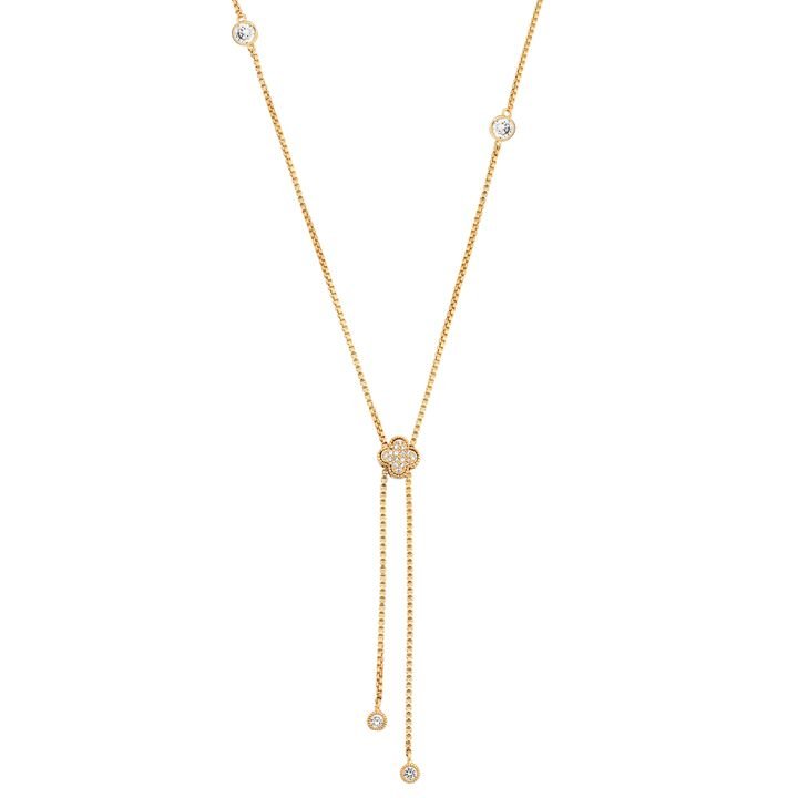 Este Colar Pontos de Luz é a combinação perfeita de versatilidade e elegância. Com corrente veneziana clássica e 4 pontos de Zircônias brilhantes, a peça se destaca pelo fecho em flor de silicone, que permite ajustar a flor no local mais apropriado para o seu look. Banhado em Ouro 18K, é ideal para ser usado sozinho ou em combinação com outros colares mais curtos, proporcionando um toque de luz e sofisticação ao seu visual.