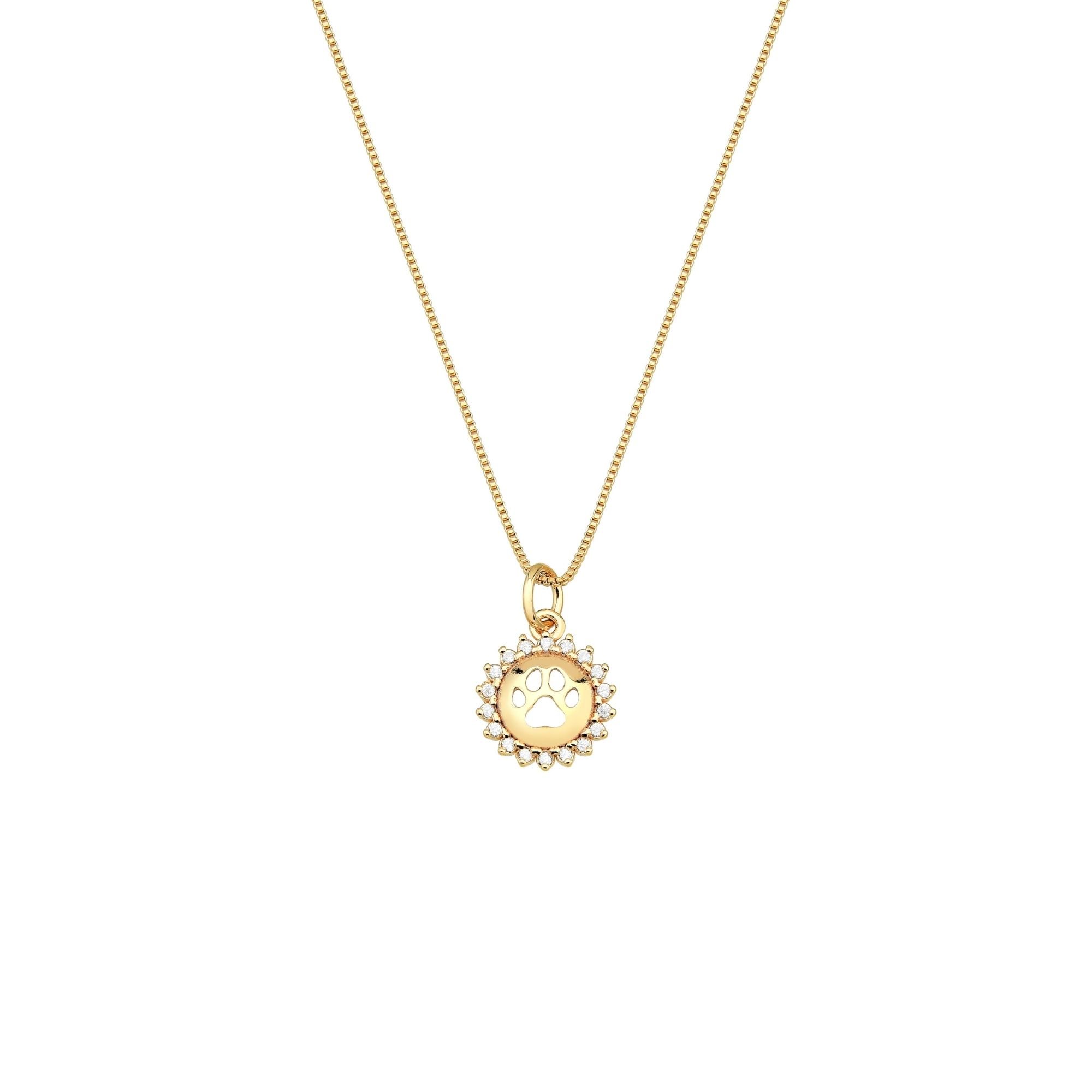 Colar Redondo Cravejado e Patinha de Cachorro Fressen Moms Banhado a Ouro 18K Um símbolo de amor incondicional e companheirismo. Este colar delicado traz um pingente redondo cravejado com uma charmosa patinha de cachorro recortada no centro, representando a conexão especial entre humanos e seus pets. A base dourada e os detalhes em zircônias trazem brilho e sofisticação, perfeito para quem deseja carregar no peito uma lembrança cheia de afeto.