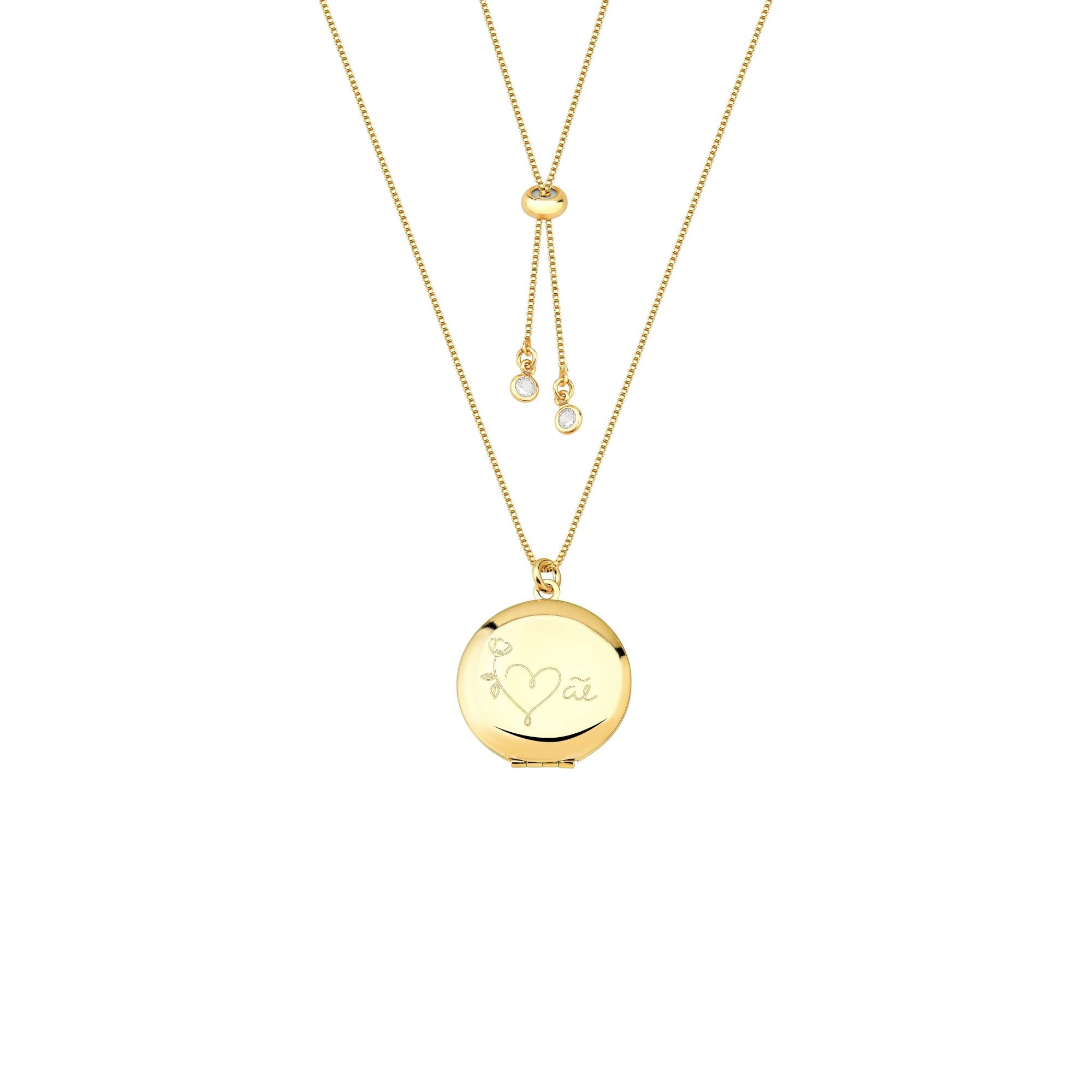 Colar Relicário Mom's Banhado a Ouro 18K O Colar Relicário Mom's é uma peça sofisticada e carregada de significado, feita especialmente para celebrar o amor materno. Com um delicado relicário banhado a Ouro 18K, este colar oferece um design atemporal, permitindo a personalização com pequenas memórias ou fotos. Ideal para presentear alguém especial ou para carregar perto de você uma lembrança afetiva de quem se ama. O acabamento polido e o toque elegante tornam esta joia uma escolha perfeita para todas as ocasiões. OBS: Peças do My Collection não tem troca ou devolução