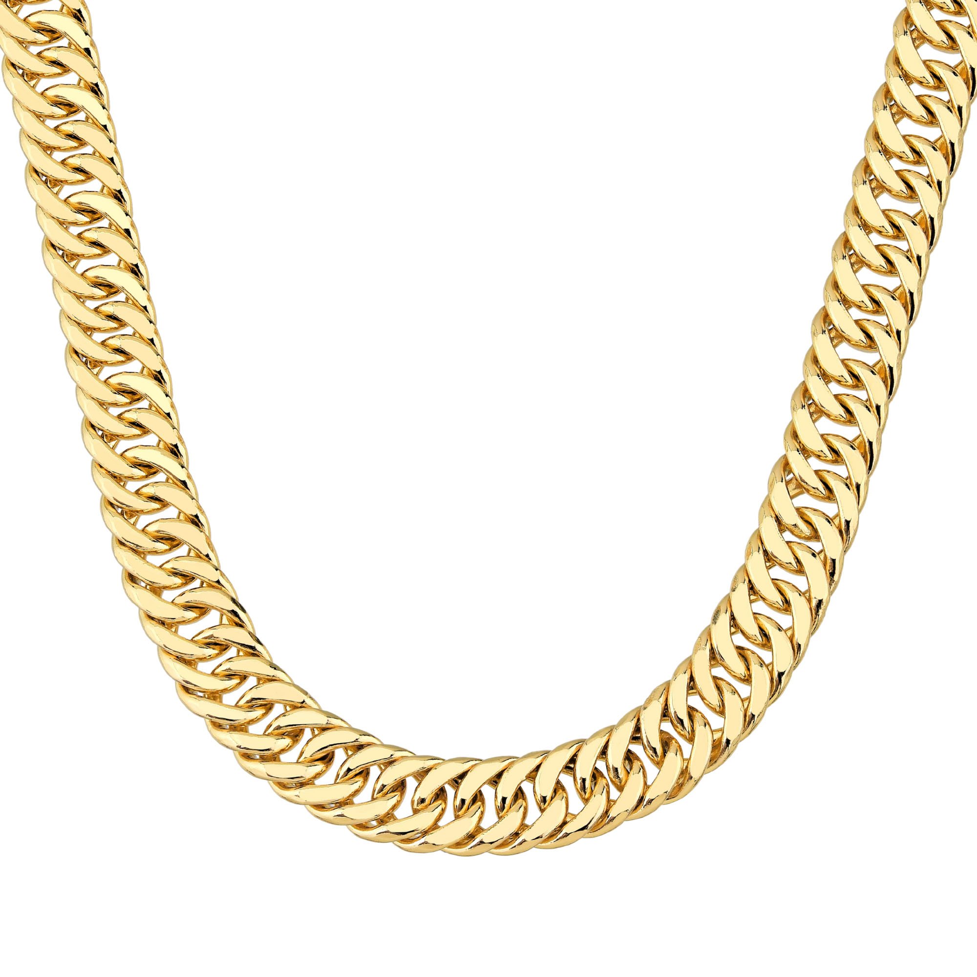 Corrente Grumet Dupla Masculina 10mm Banhada a Ouro 18K A Corrente Grumet Dupla Masculina 10mm Banhada a Ouro 18K é uma peça robusta e imponente, ideal para quem busca um acessório de presença marcante. Seu design sofisticado, com elos duplos e acabamento polido, proporciona um visual elegante e moderno, perfeito para compor diferentes estilos com requinte e exclusividade.