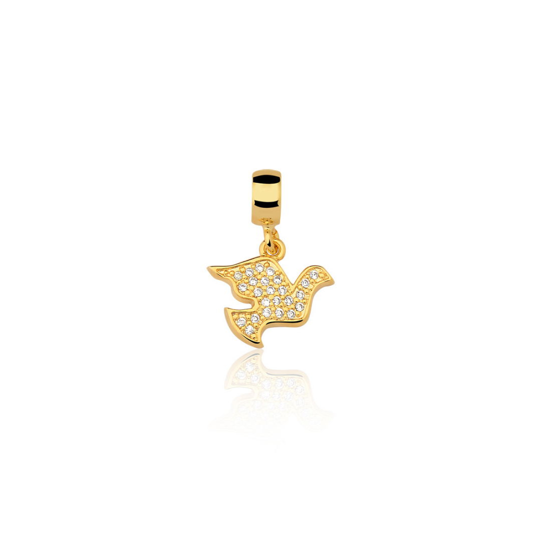 Pingente Enjoy Pomba da Paz Cravejada Banhado a Ouro 18K O Pingente Pomba da Paz, cravejado com detalhes sofisticados, simboliza harmonia e liberdade. Banhado a ouro 18K, é a peça perfeita para colecionar ou presentear alguém especial, trazendo um toque de serenidade e elegância para o seu estilo.